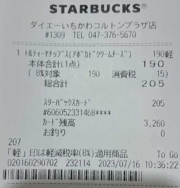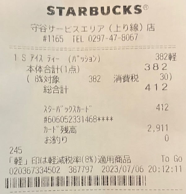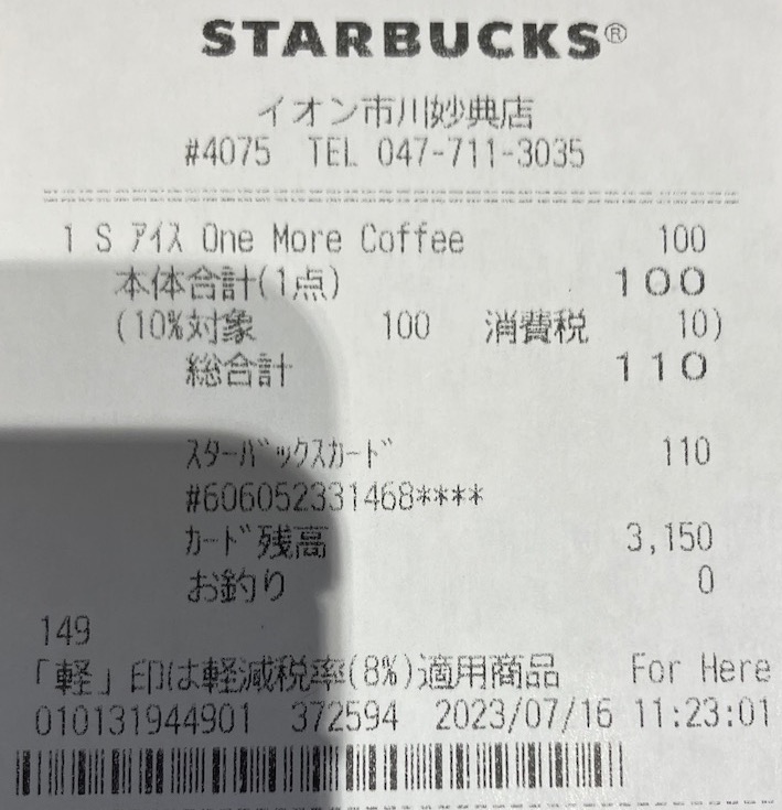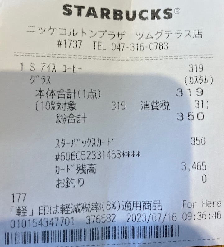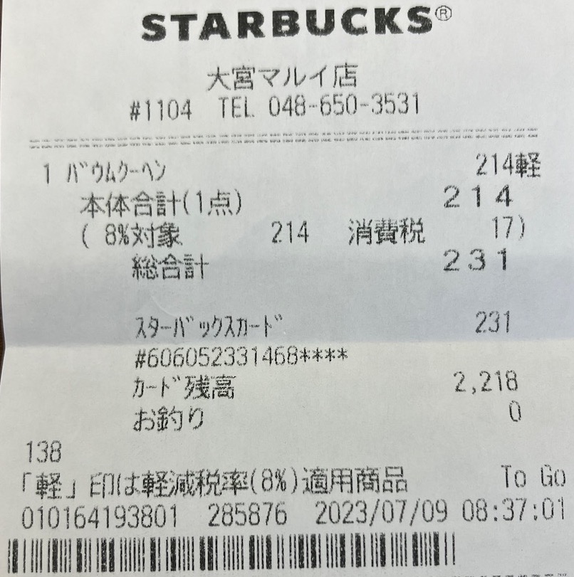 スタバのレシート