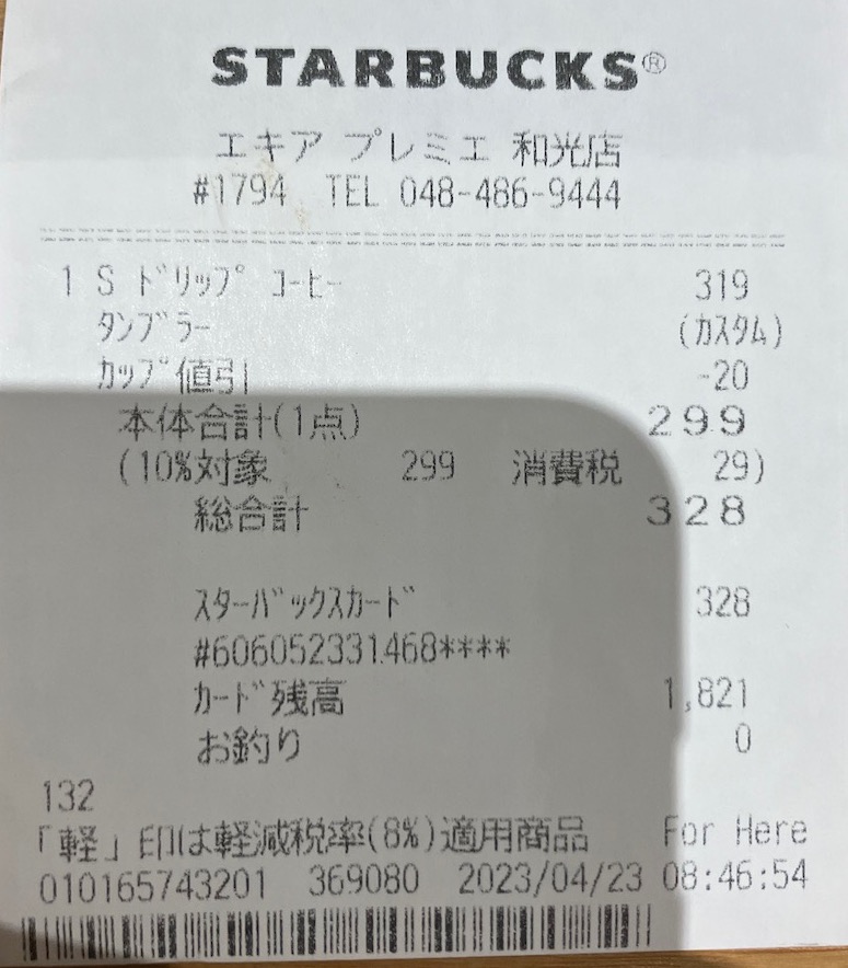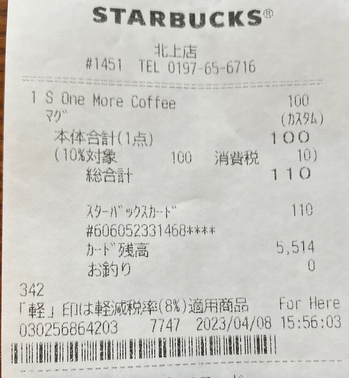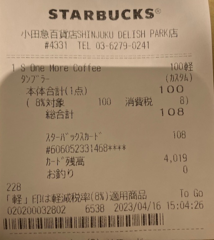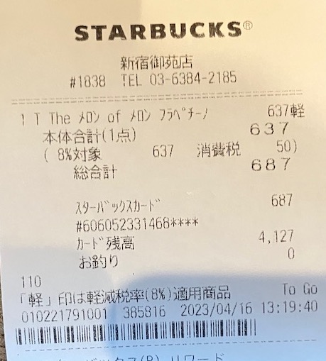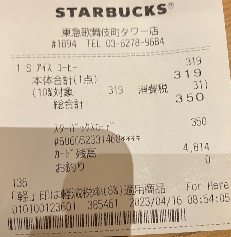 スタバのレシート