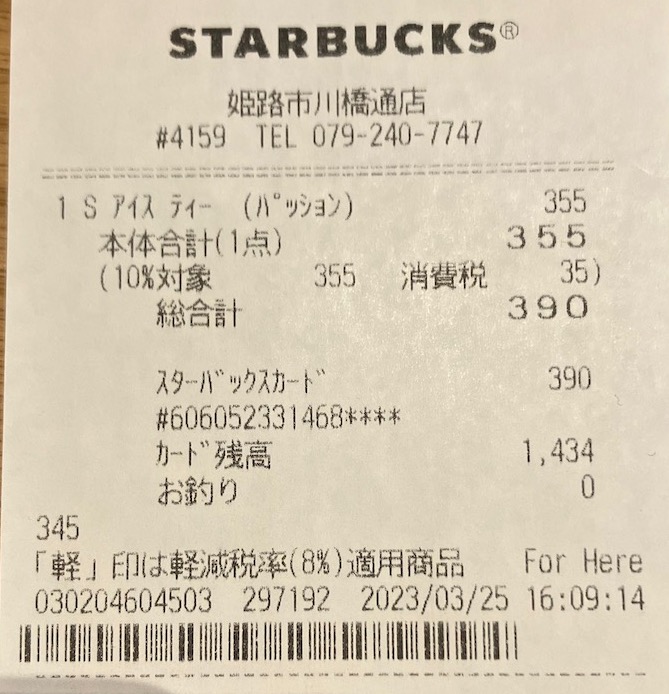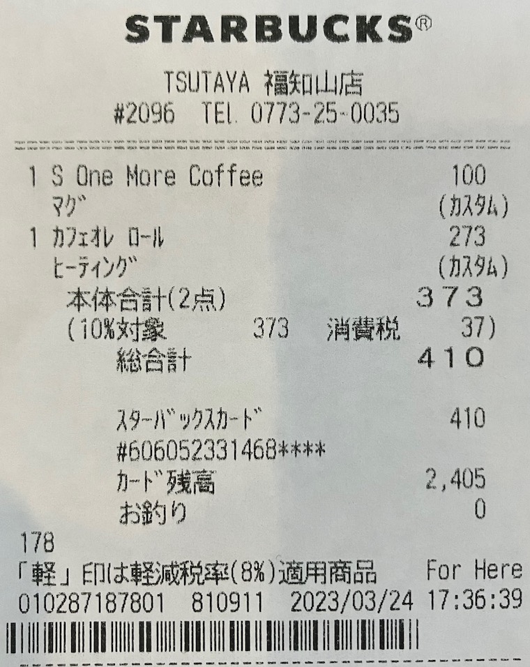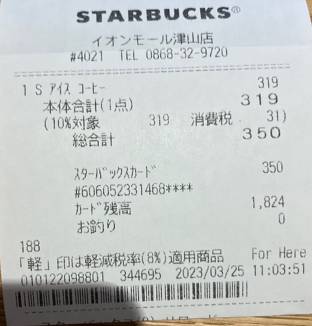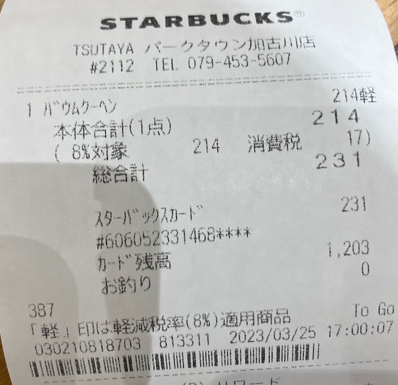 スタバのレシート