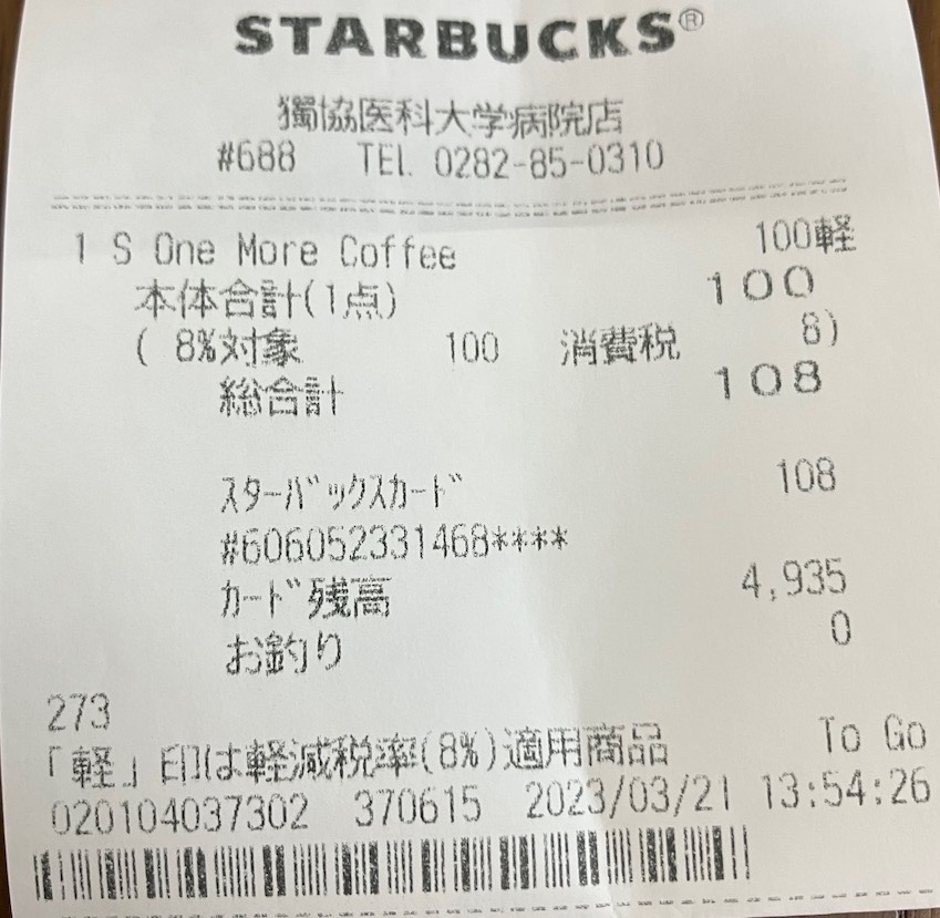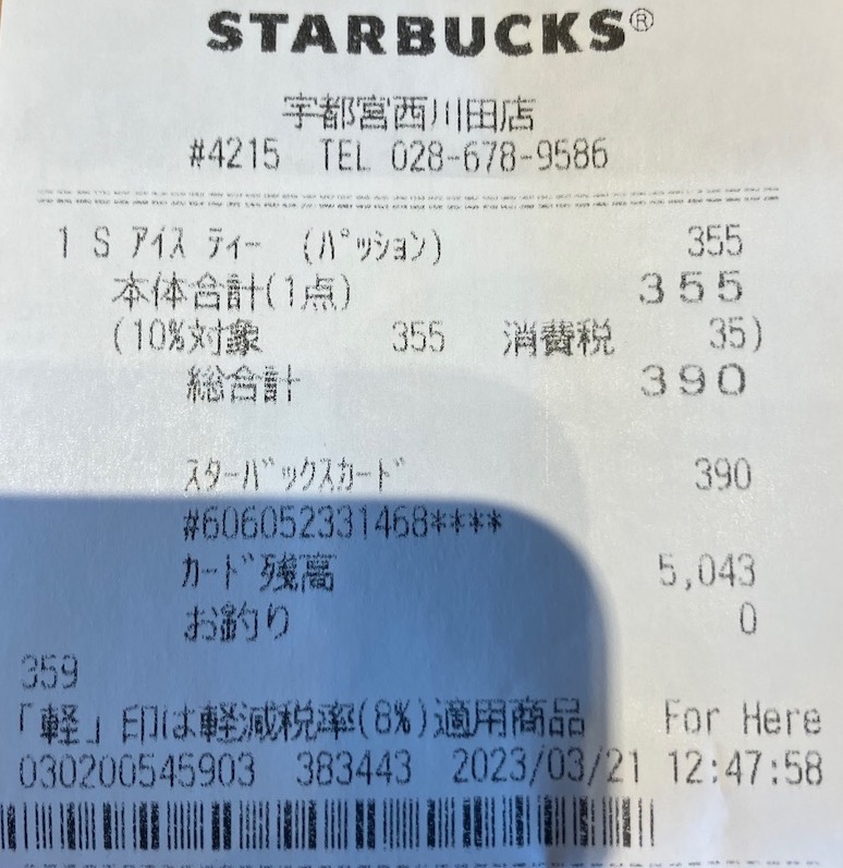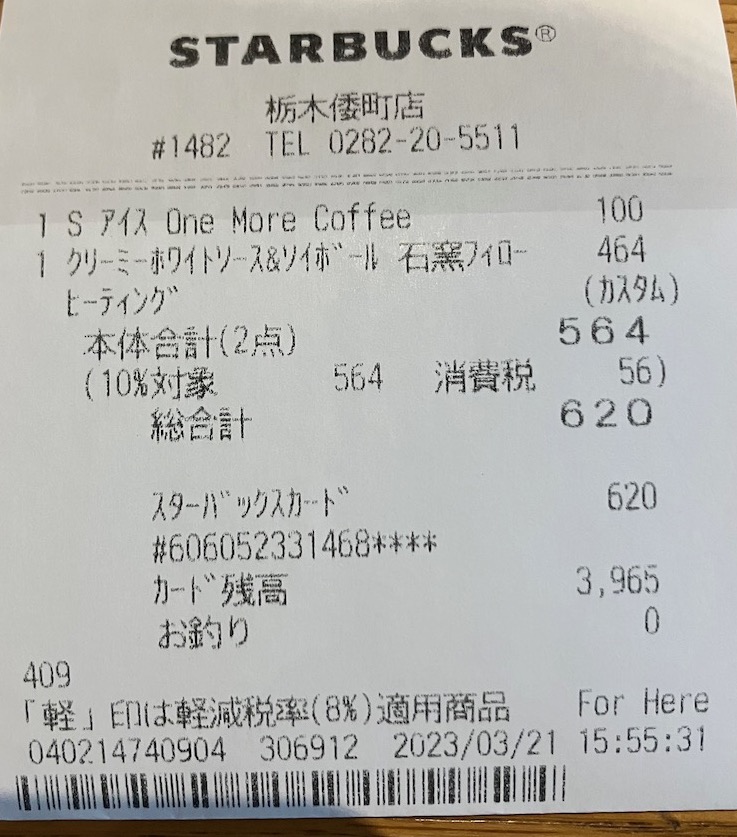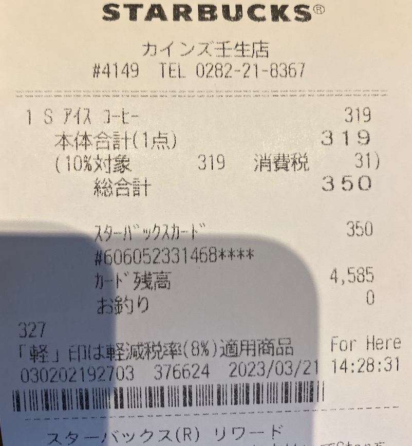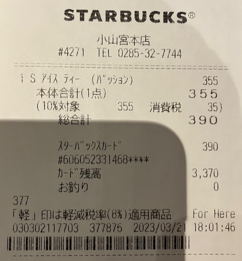 スタバのレシート