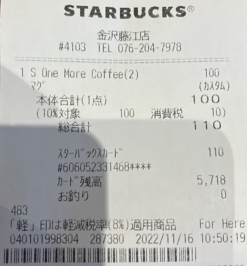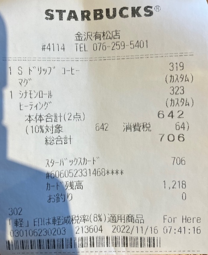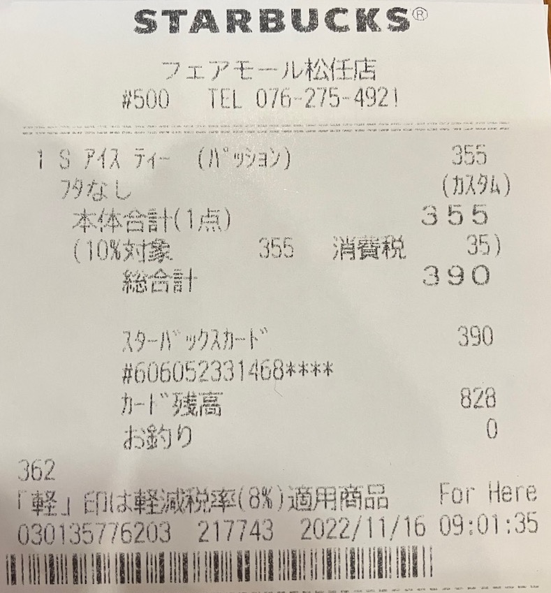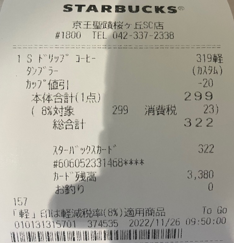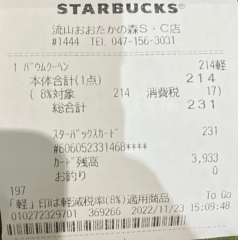 スタバのレシート