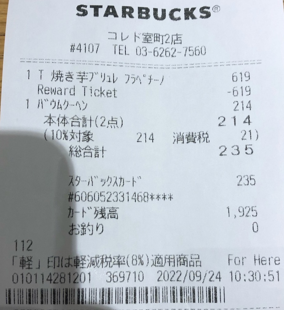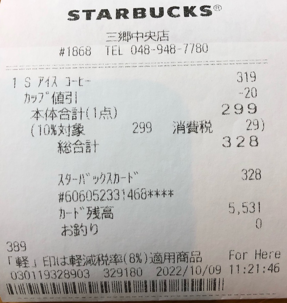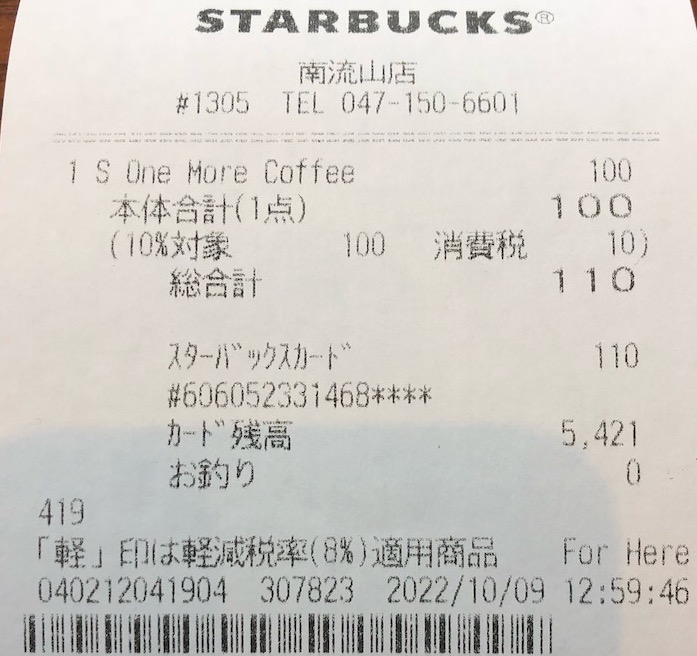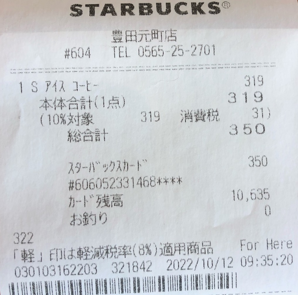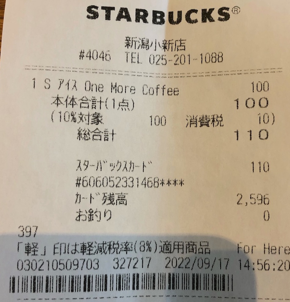 スタバのレシート
