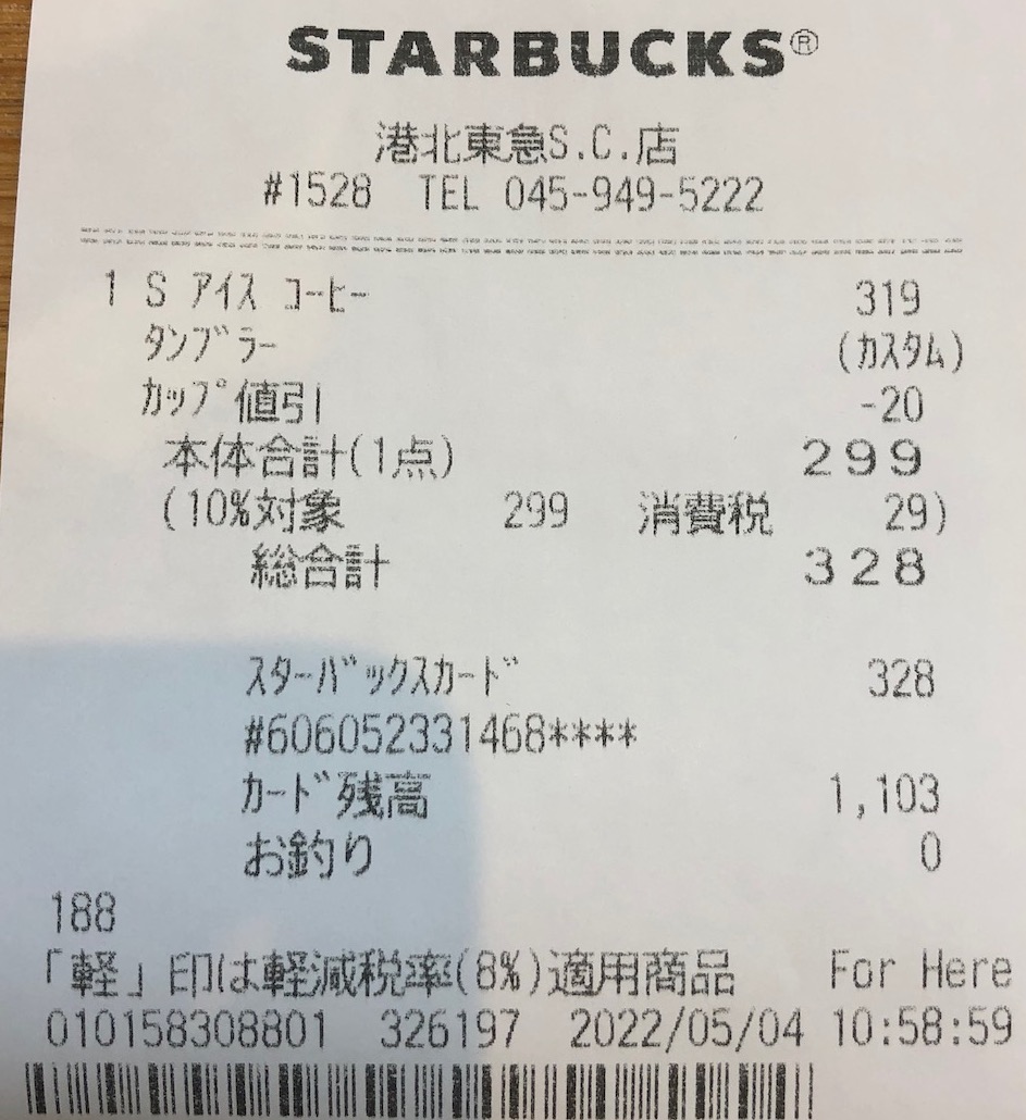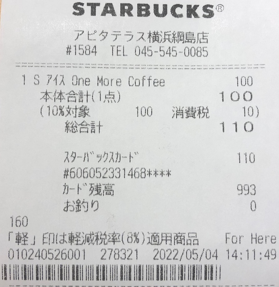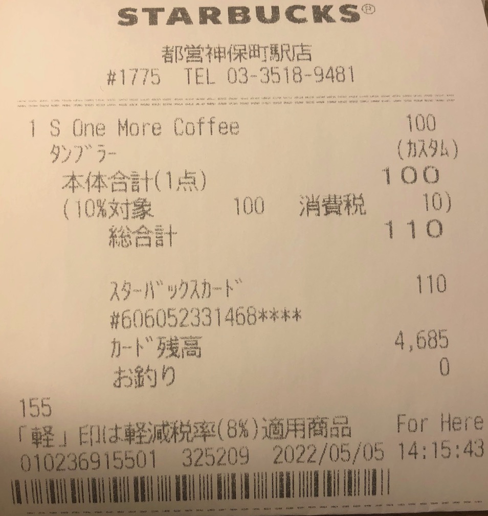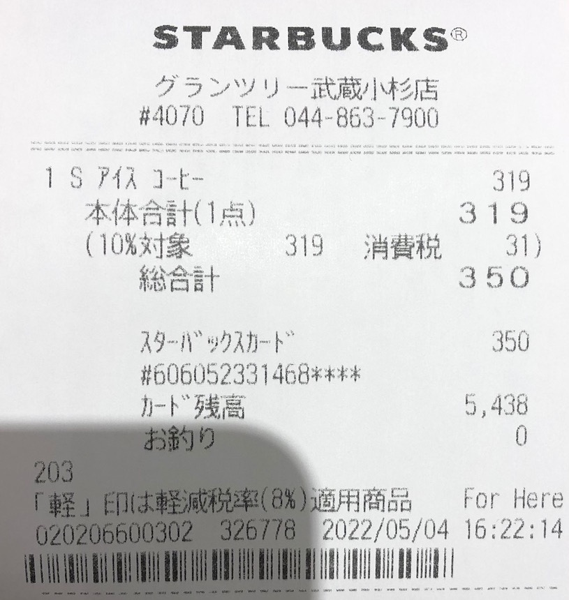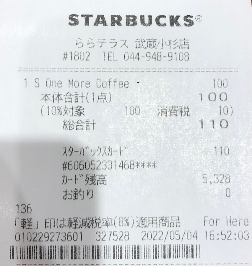 スタバのレシート