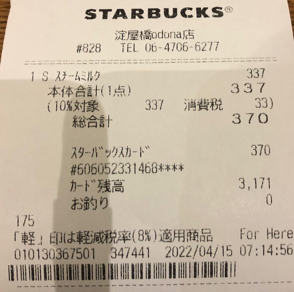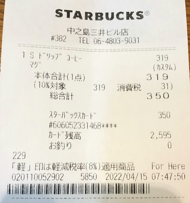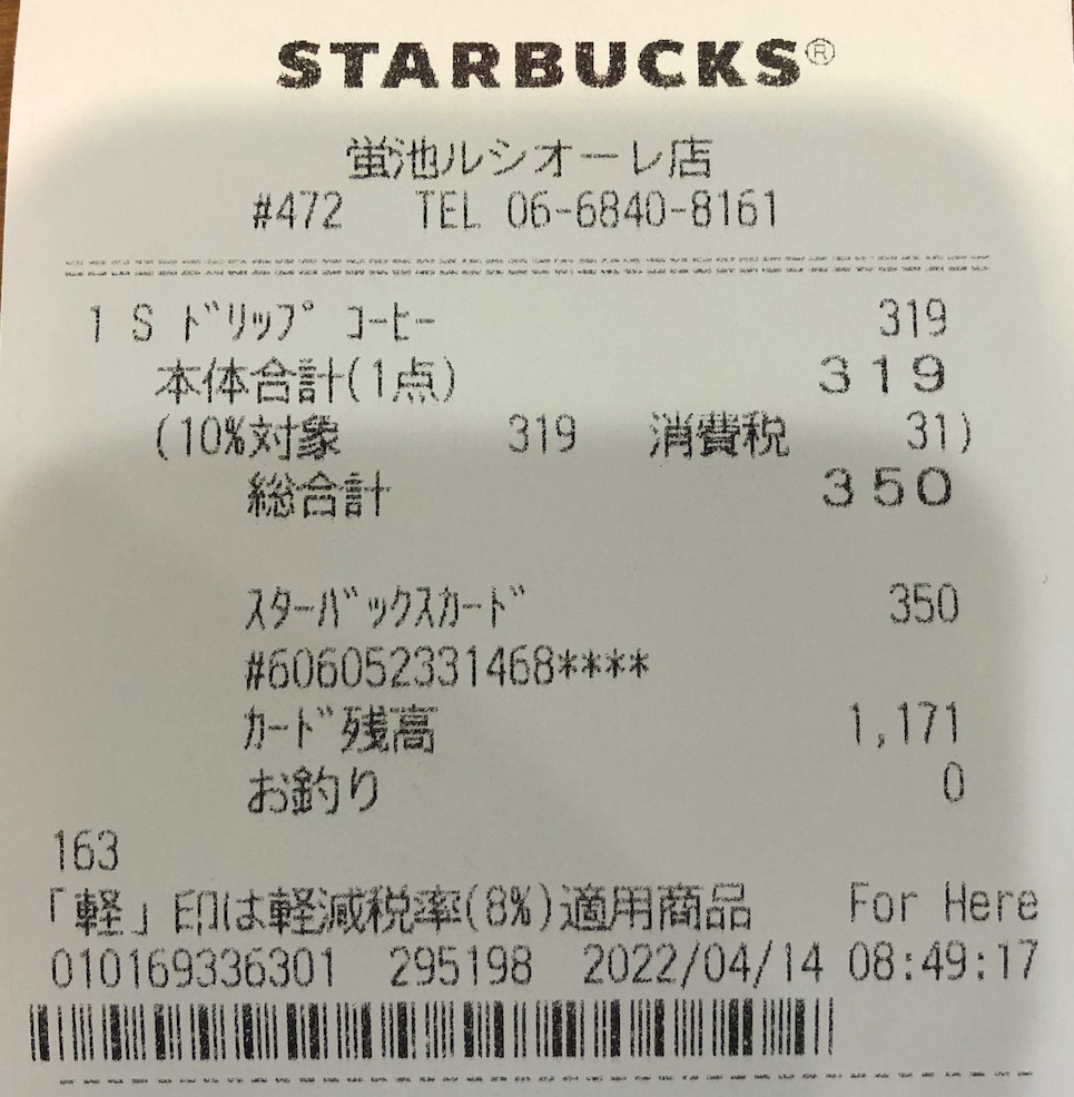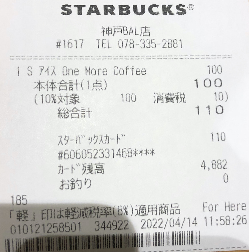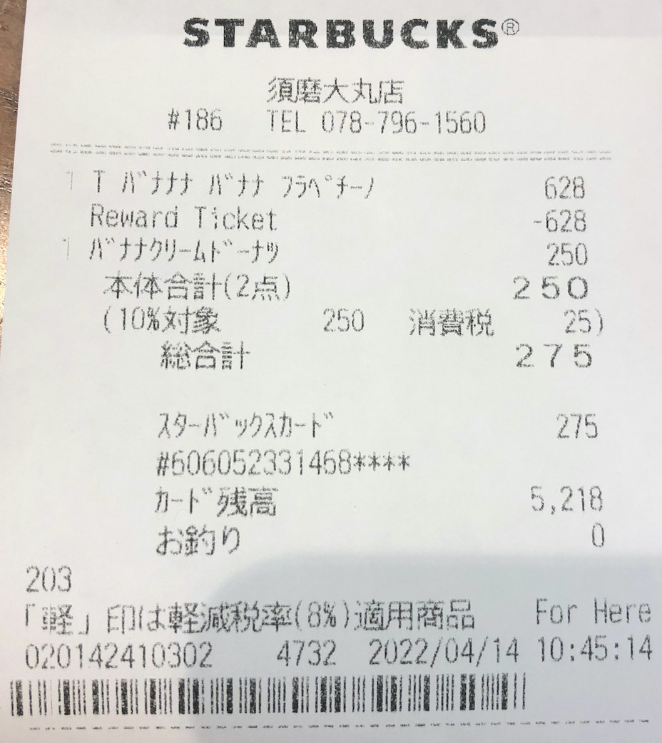 スタバのレシート