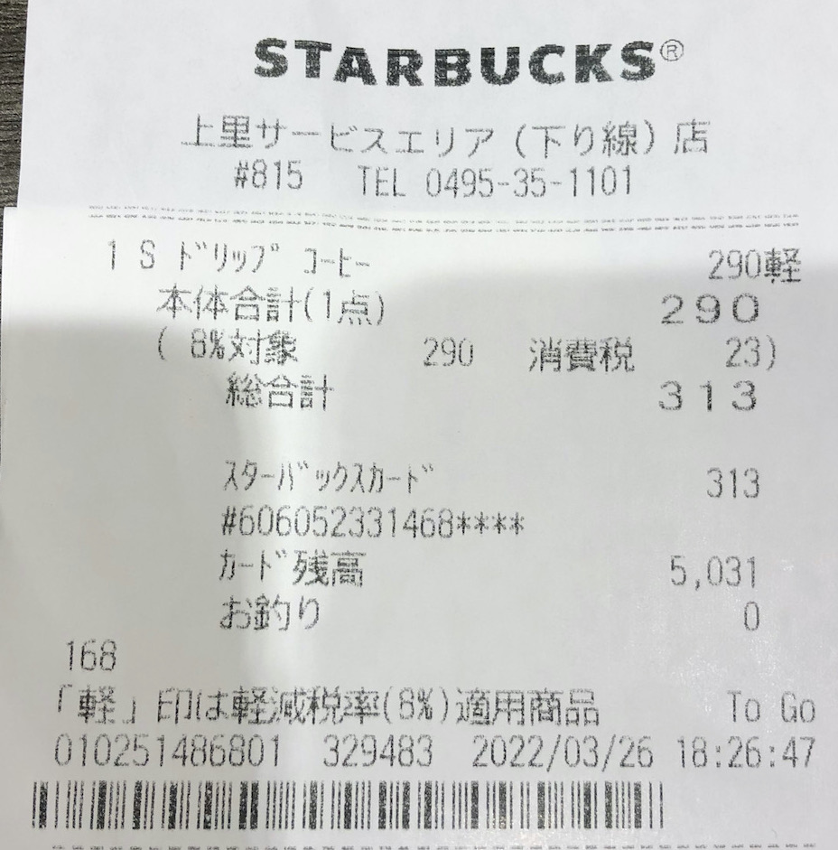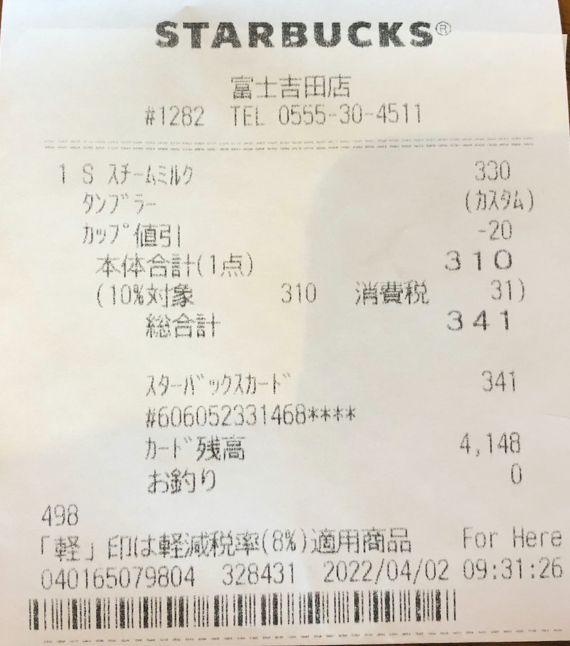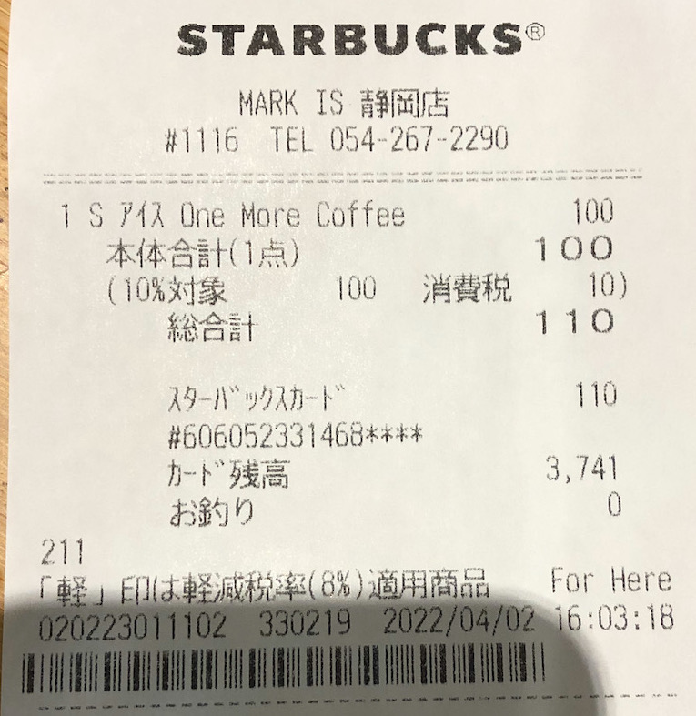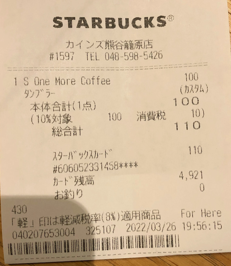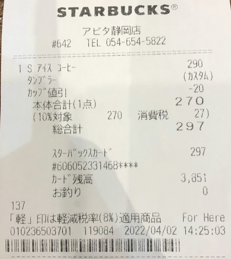 スタバのレシート