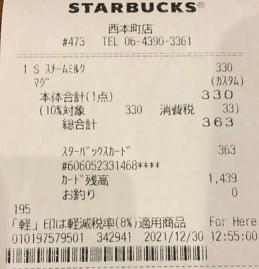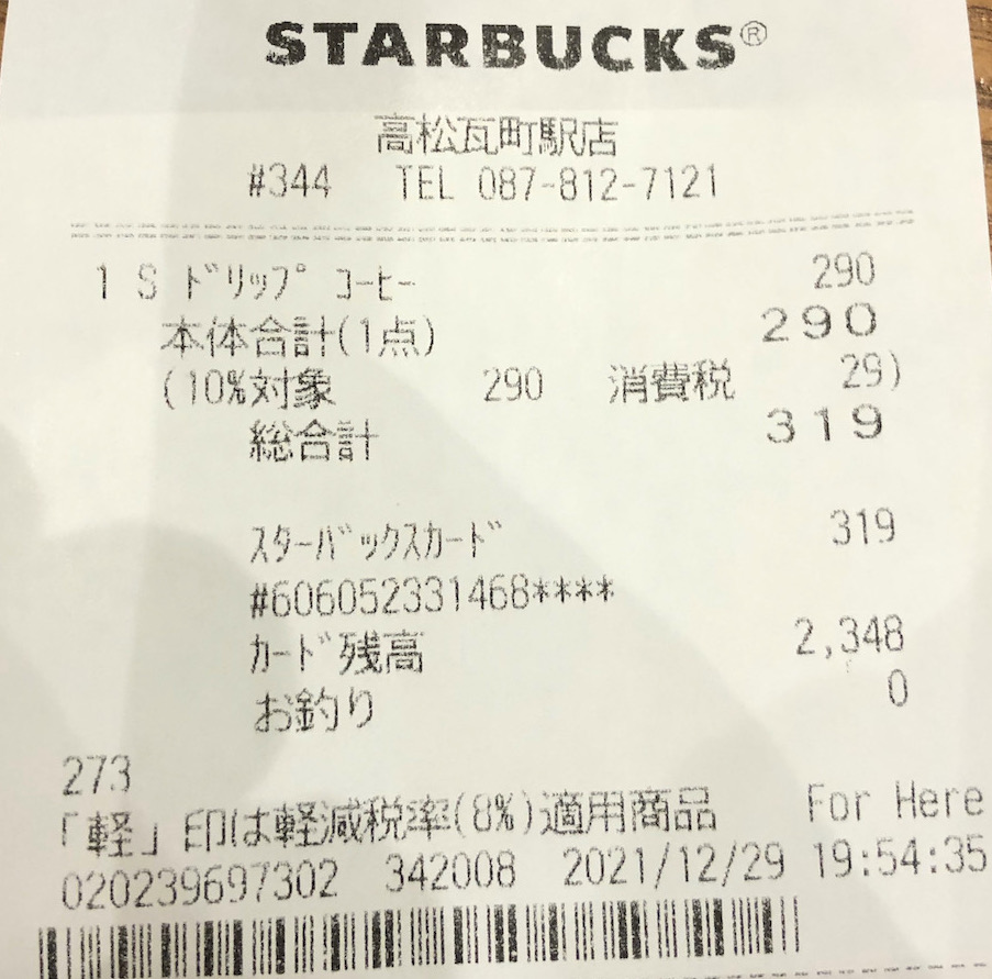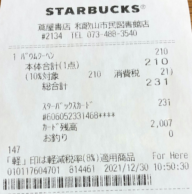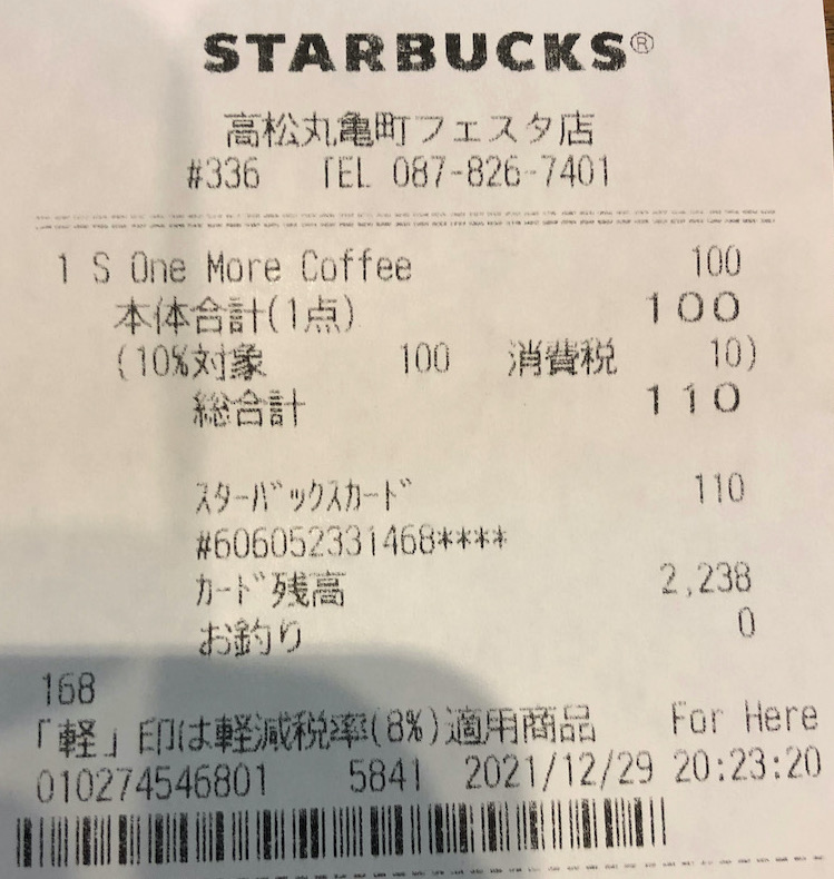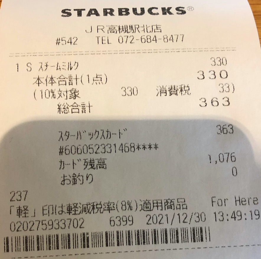 スタバのレシート