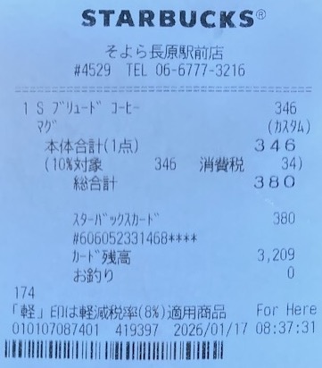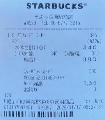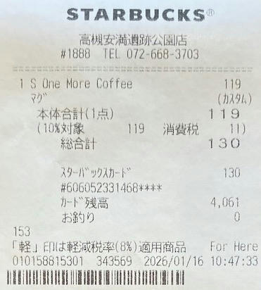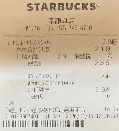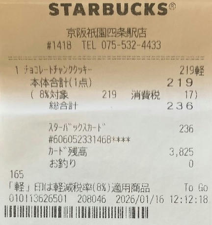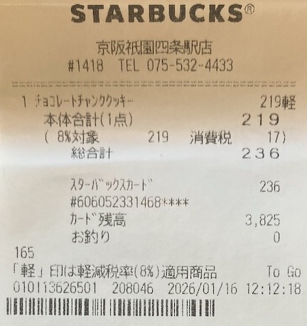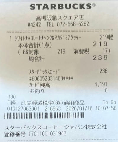 スタバのレシート