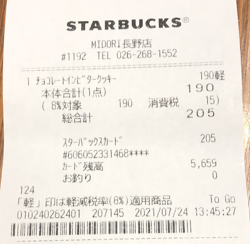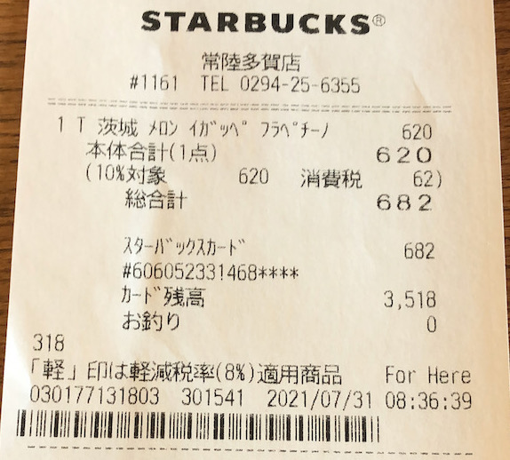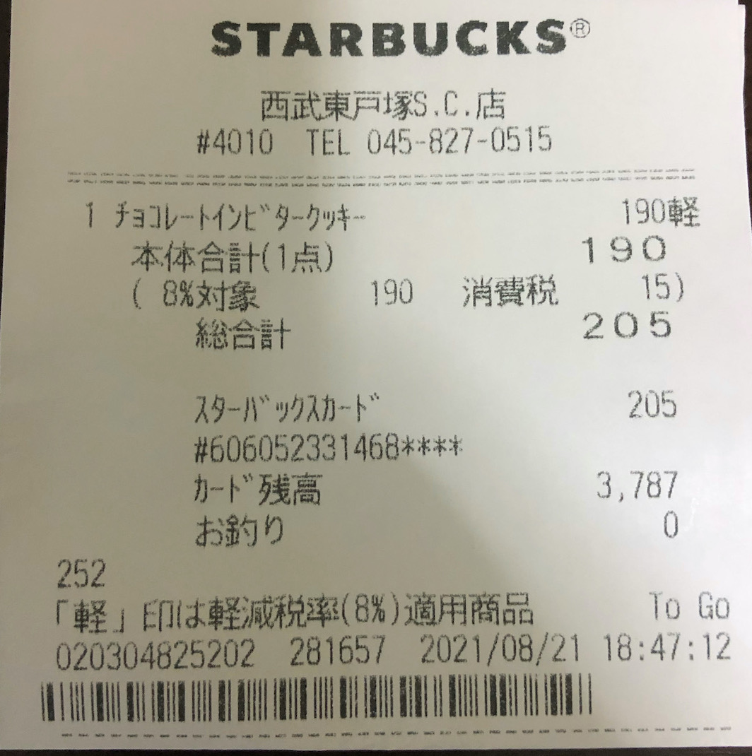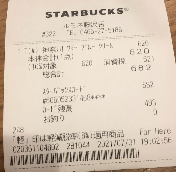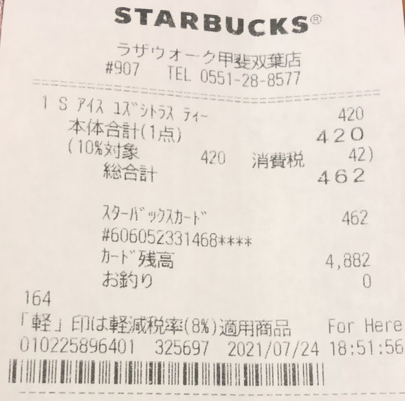 スタバのレシート