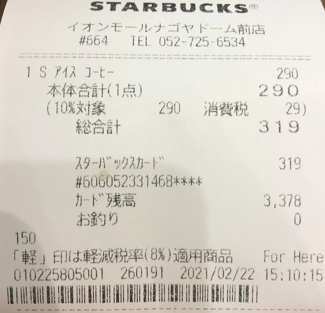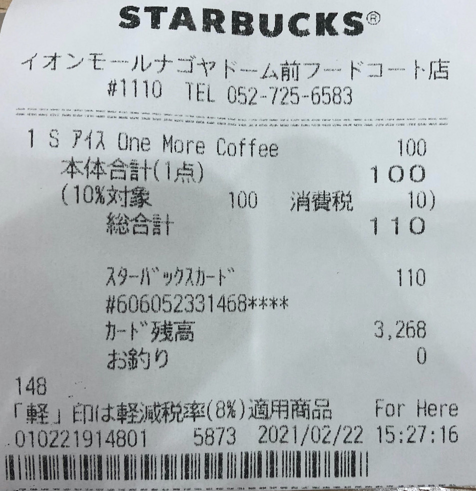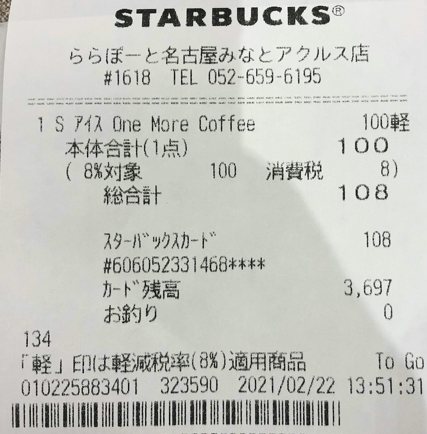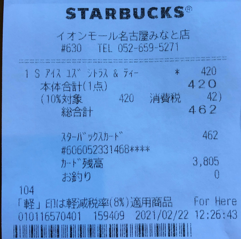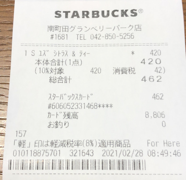 スタバのレシート