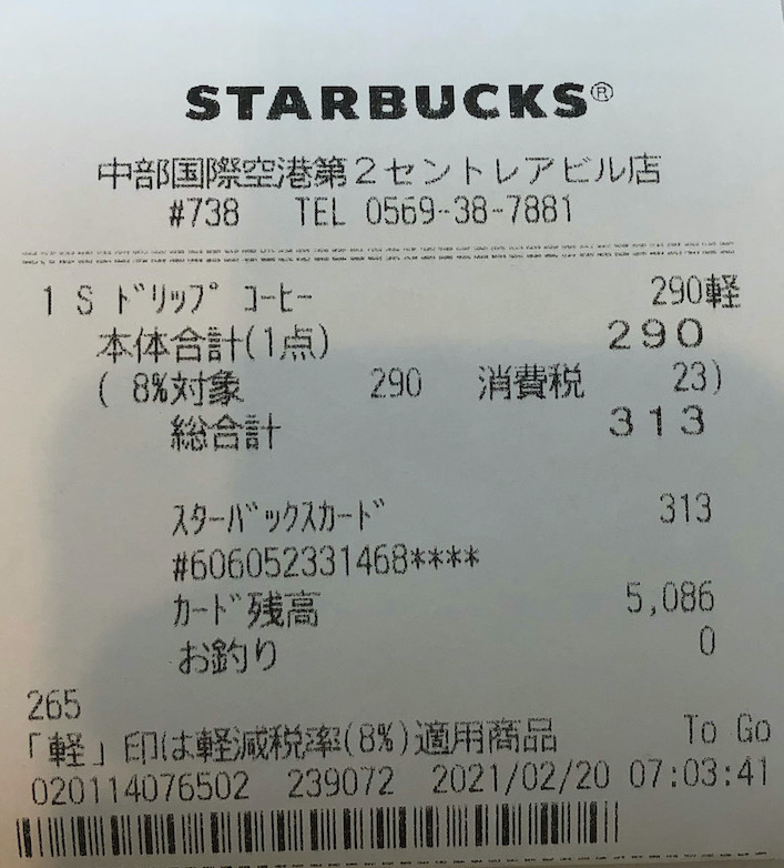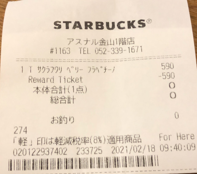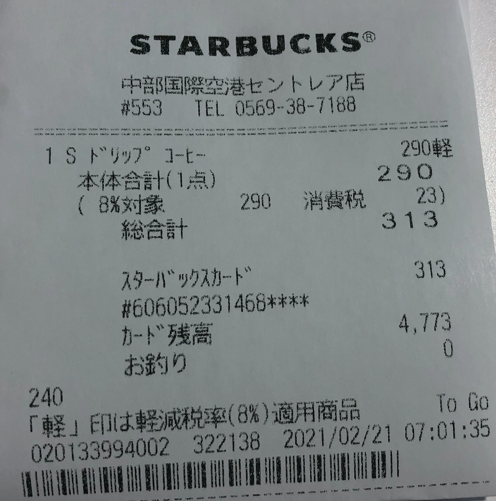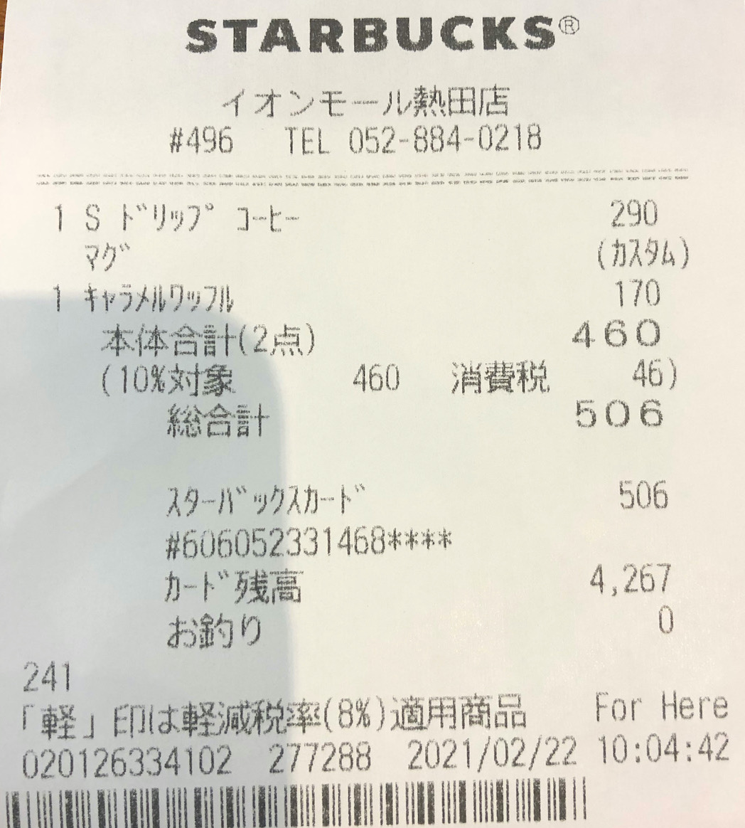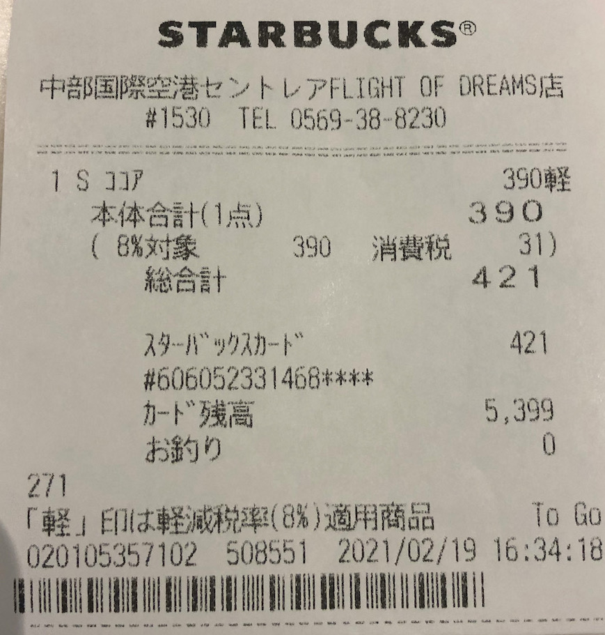 スタバのレシート