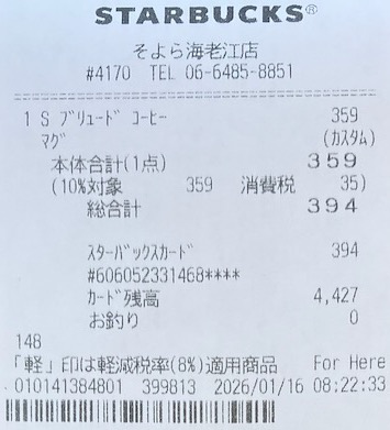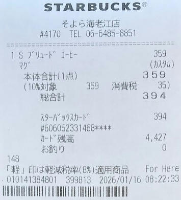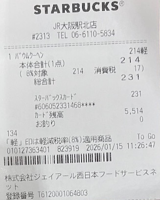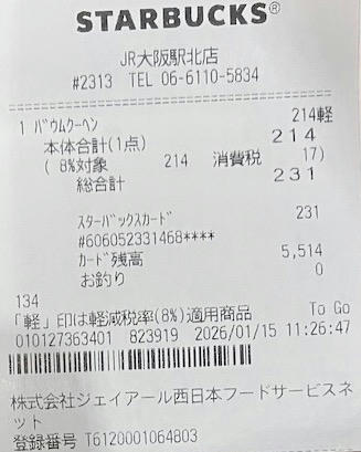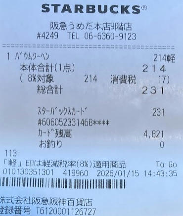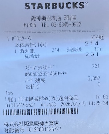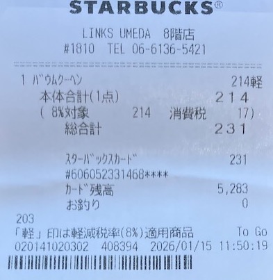 スタバのレシート