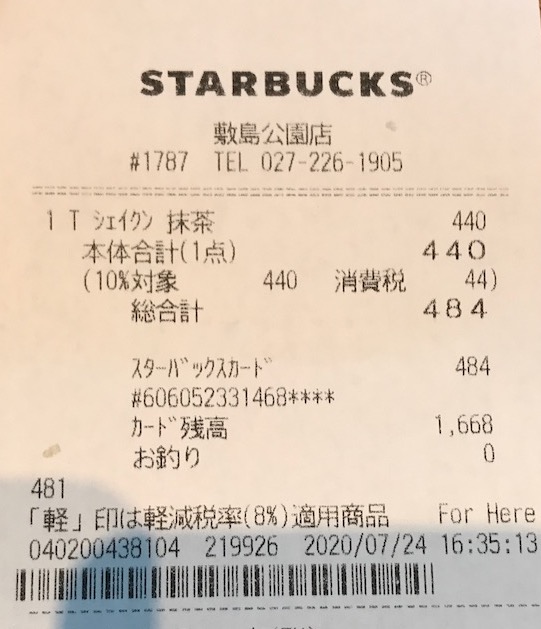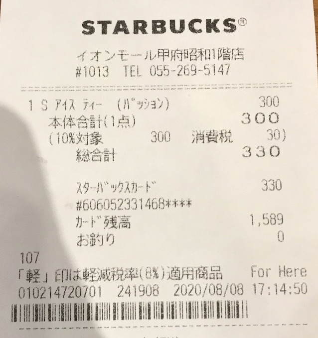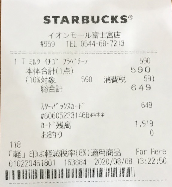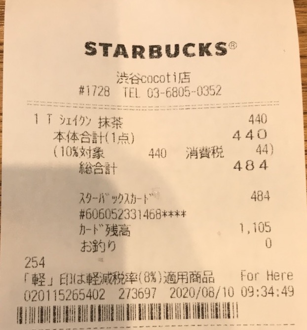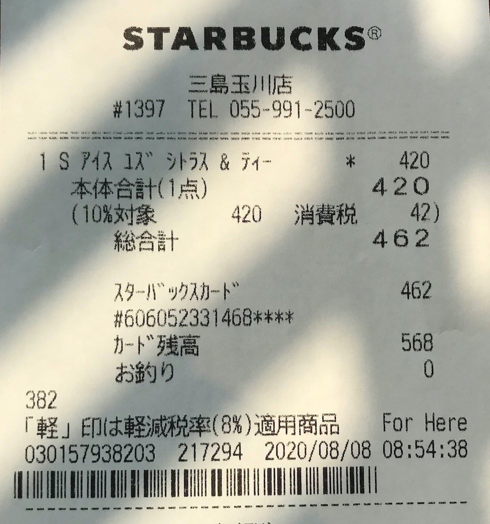 スタバのレシート