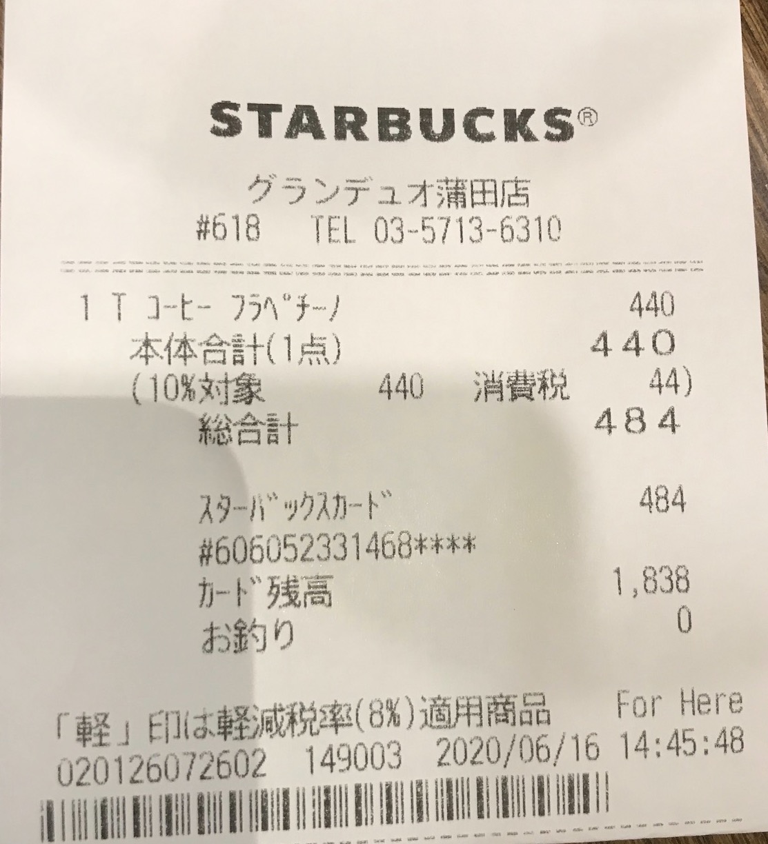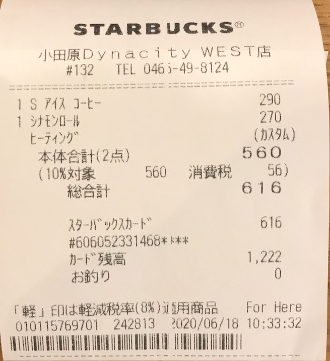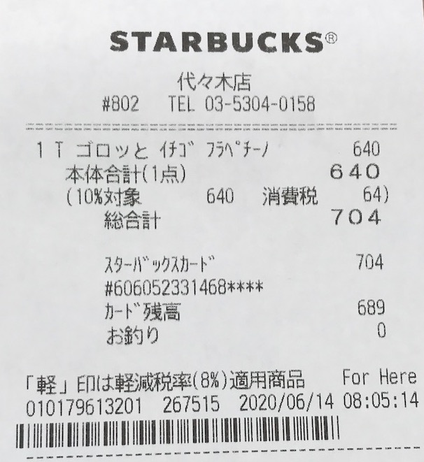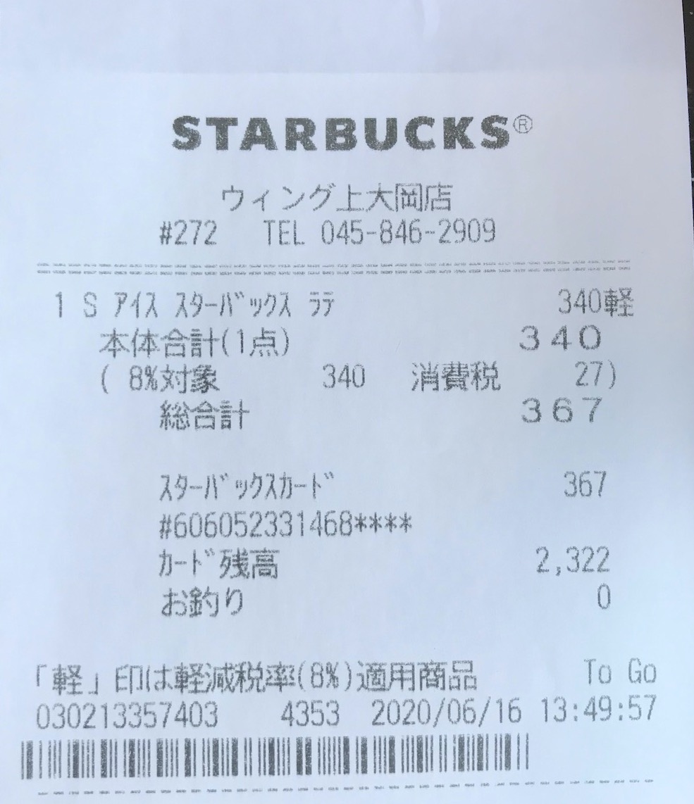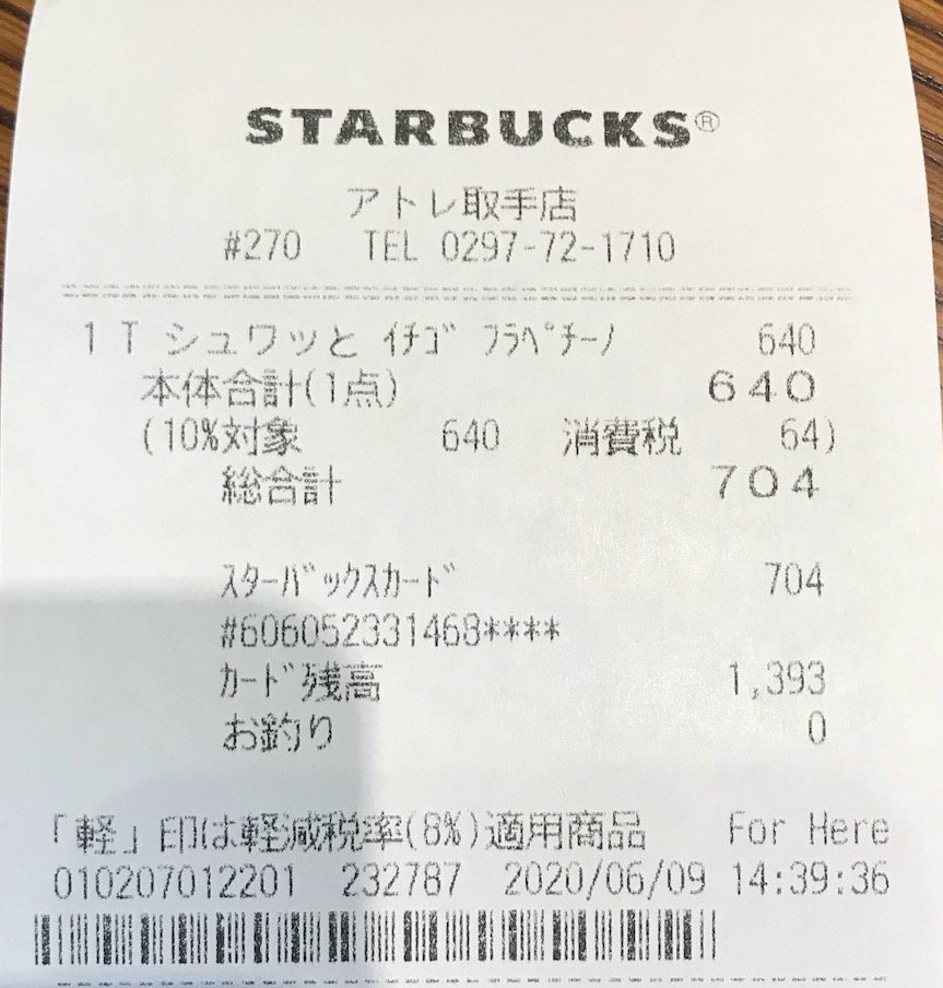 スタバのレシート