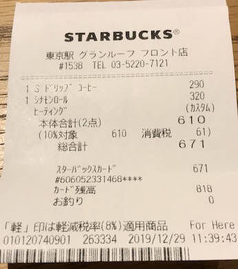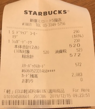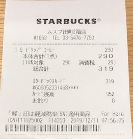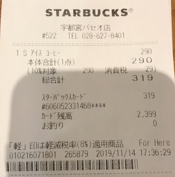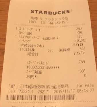 スタバのレシート
