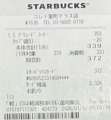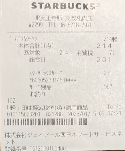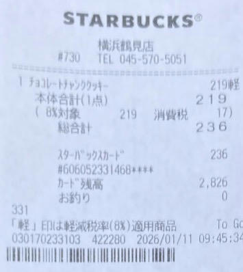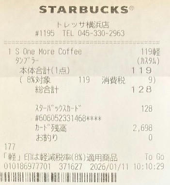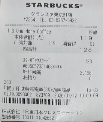 スタバのレシート