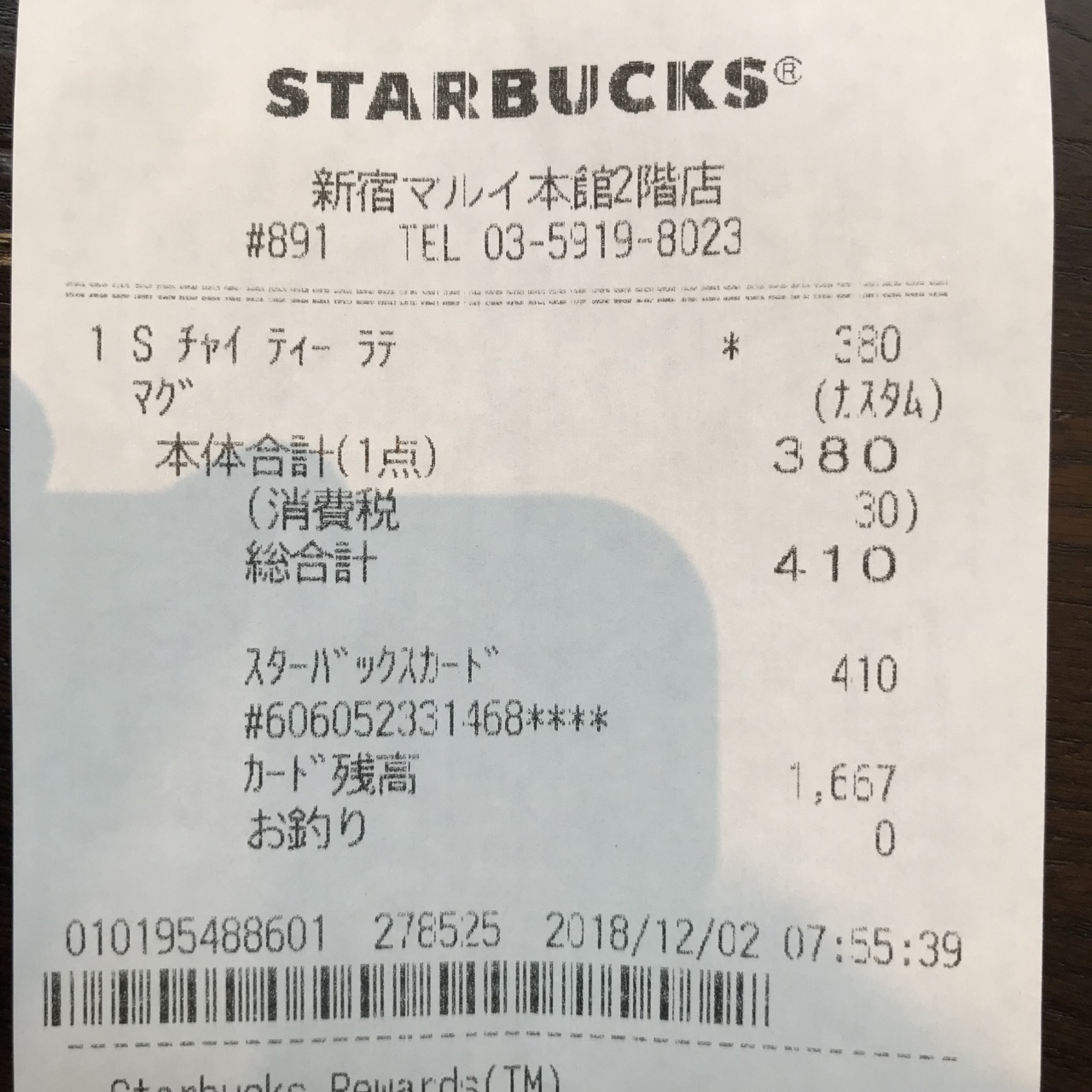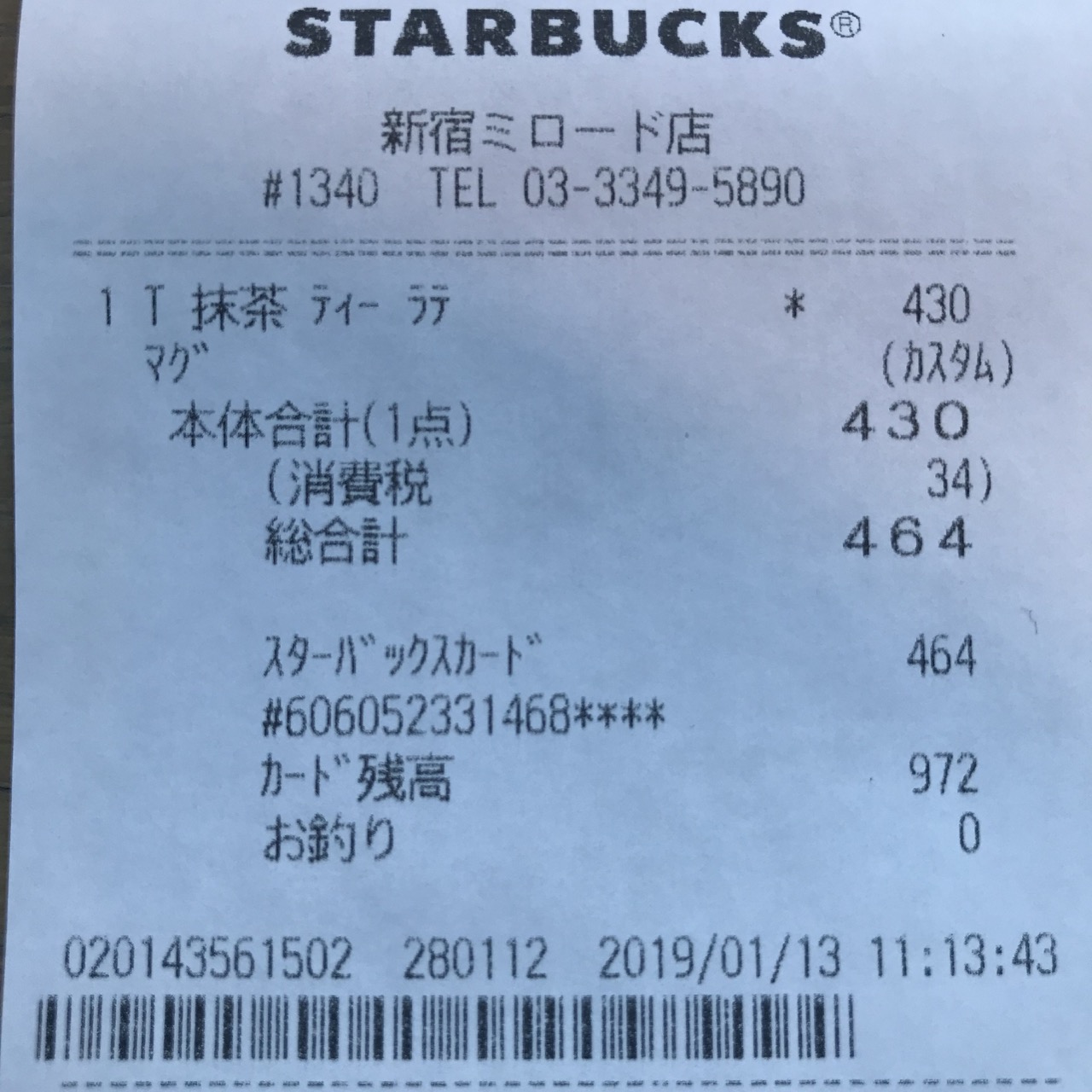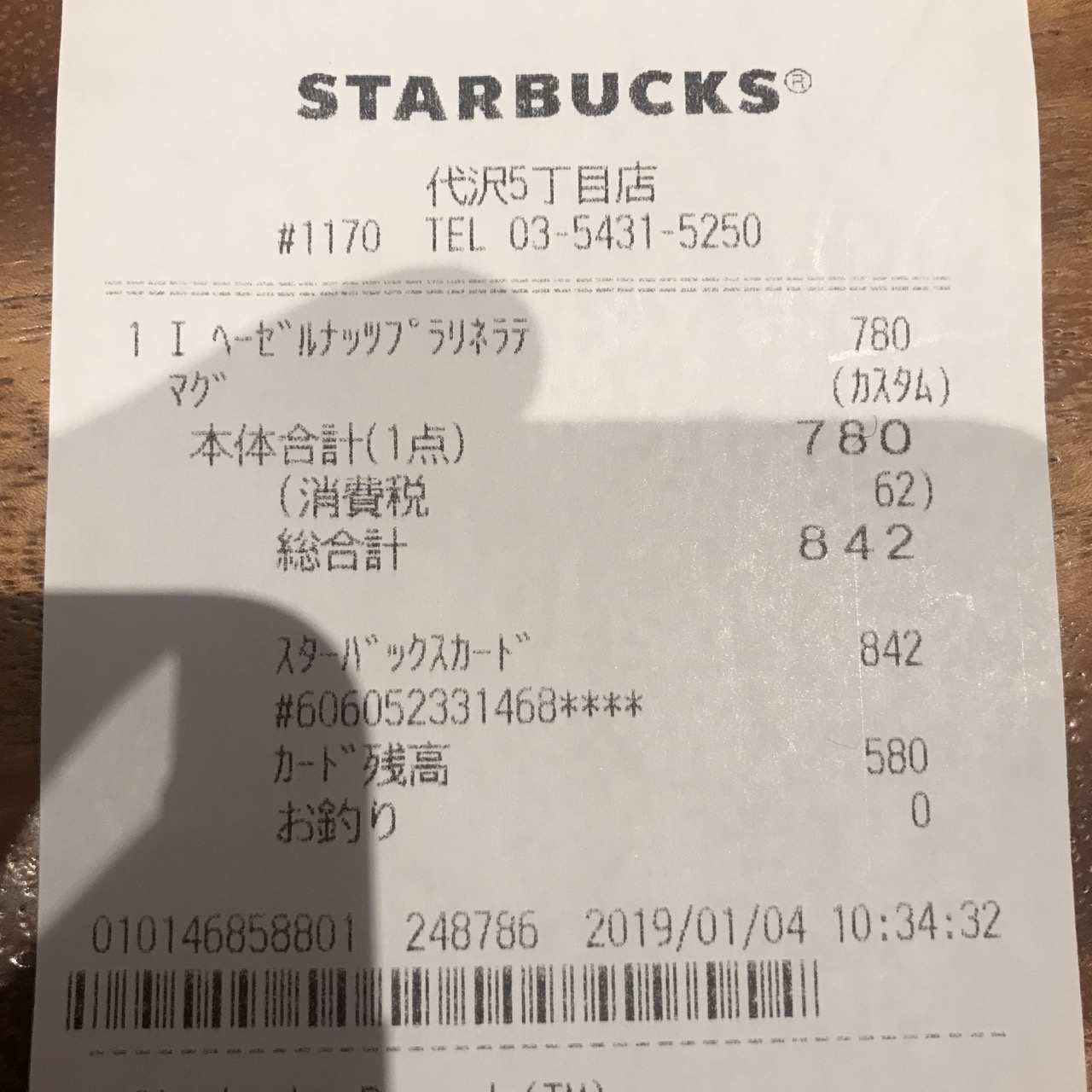スタバのレシート