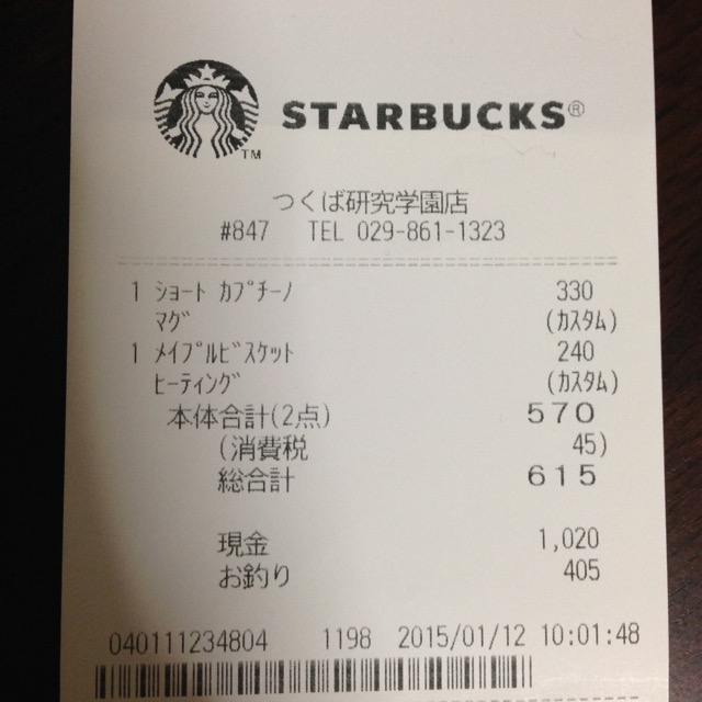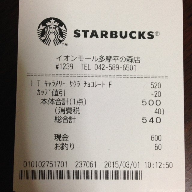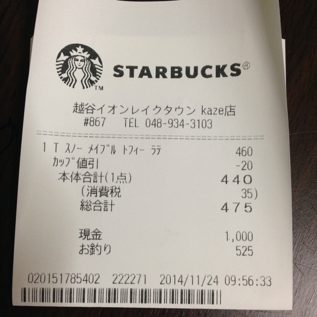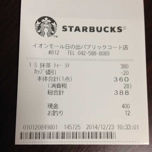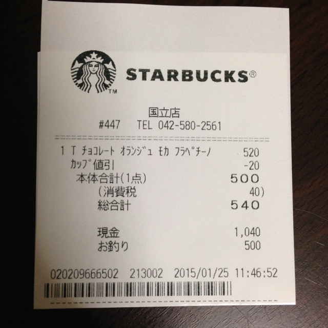 スタバのレシート