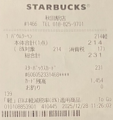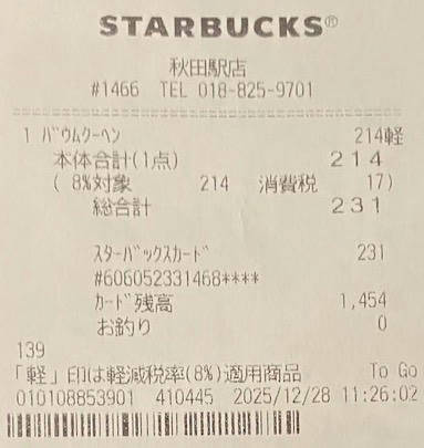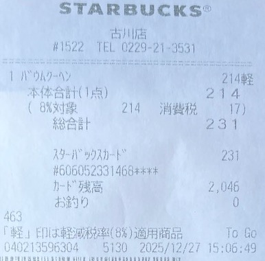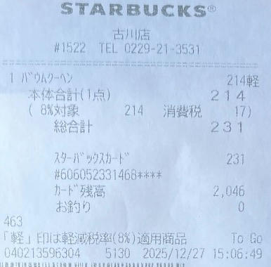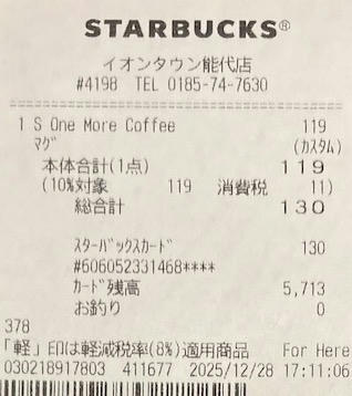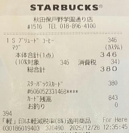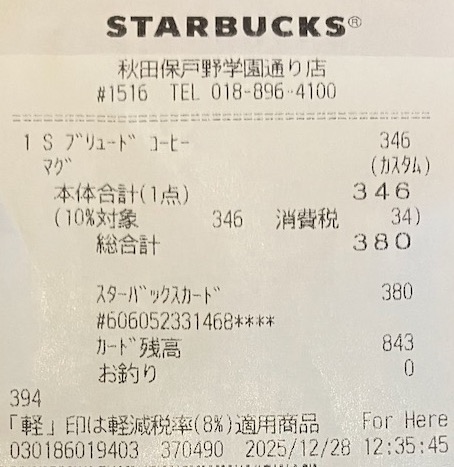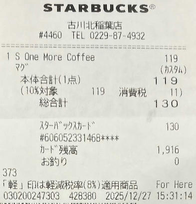 スタバのレシート