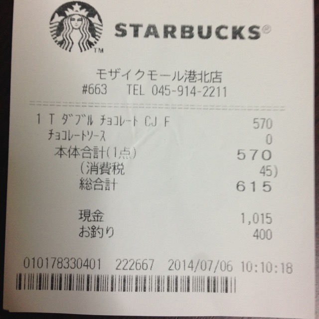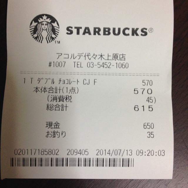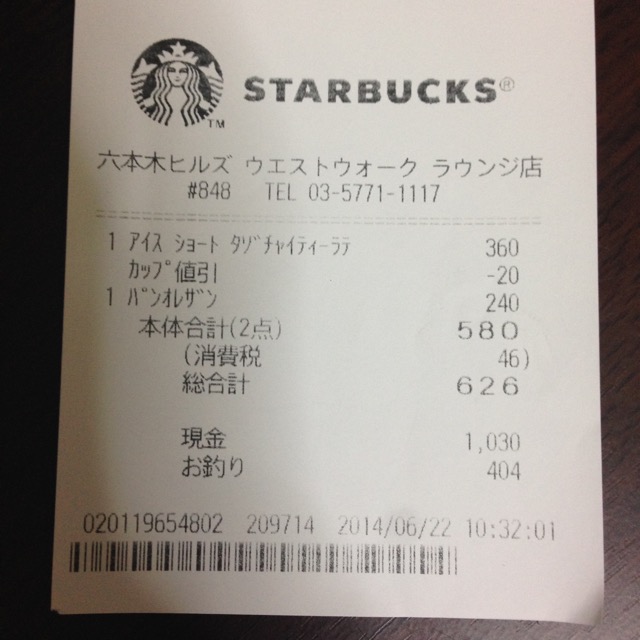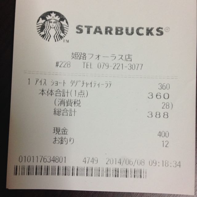 スタバのレシート