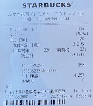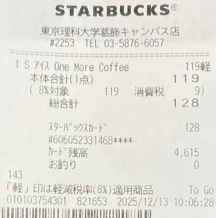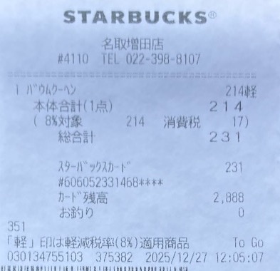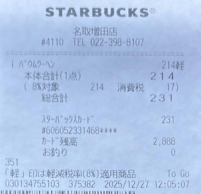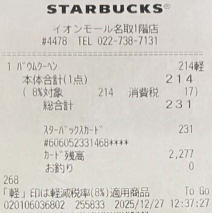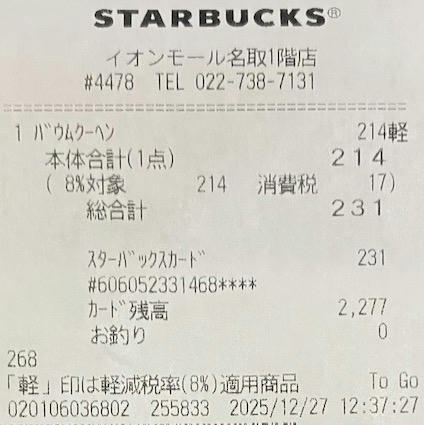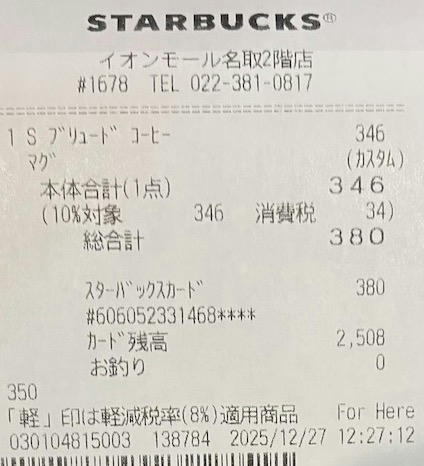 スタバのレシート