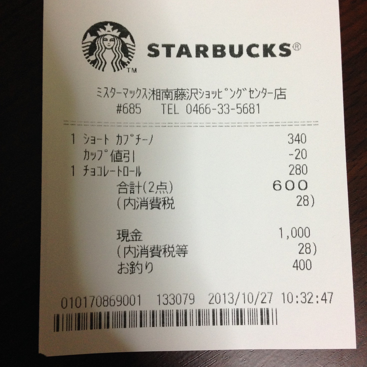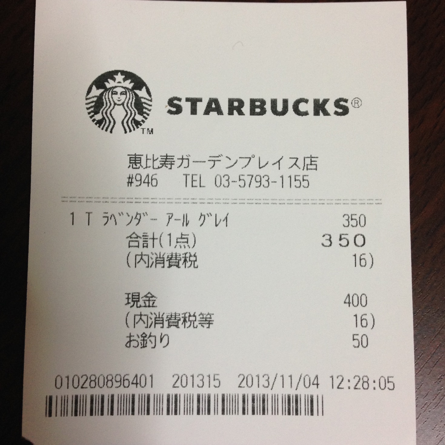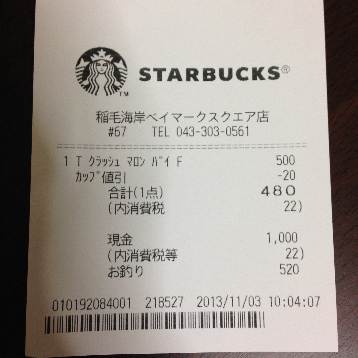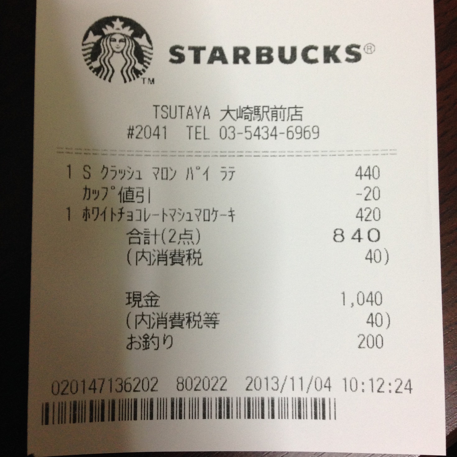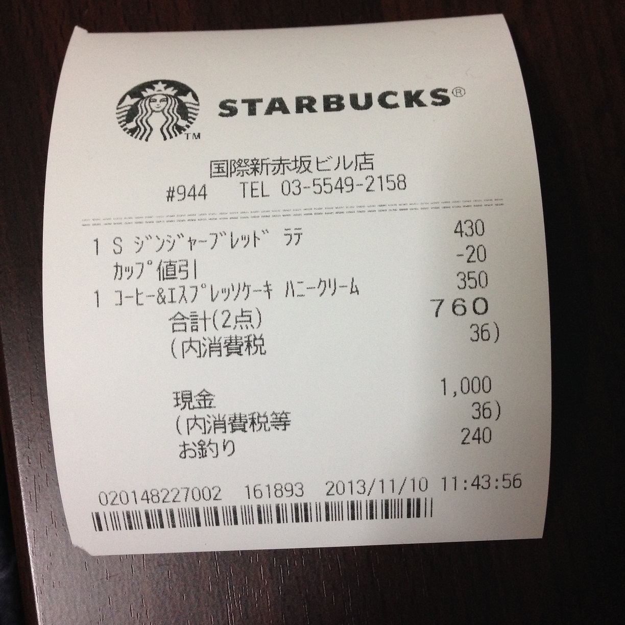 スタバのレシート