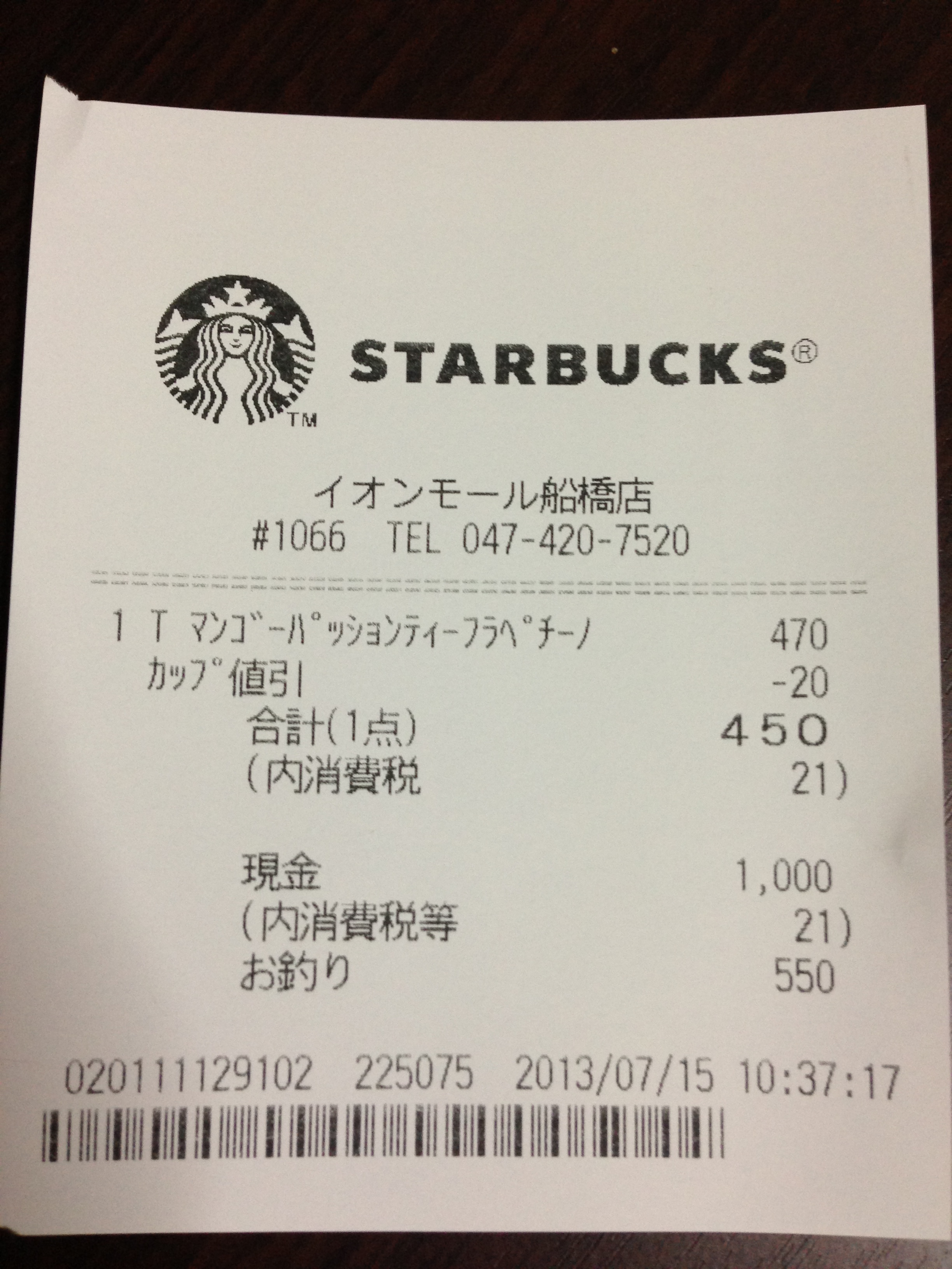 スタバのレシート