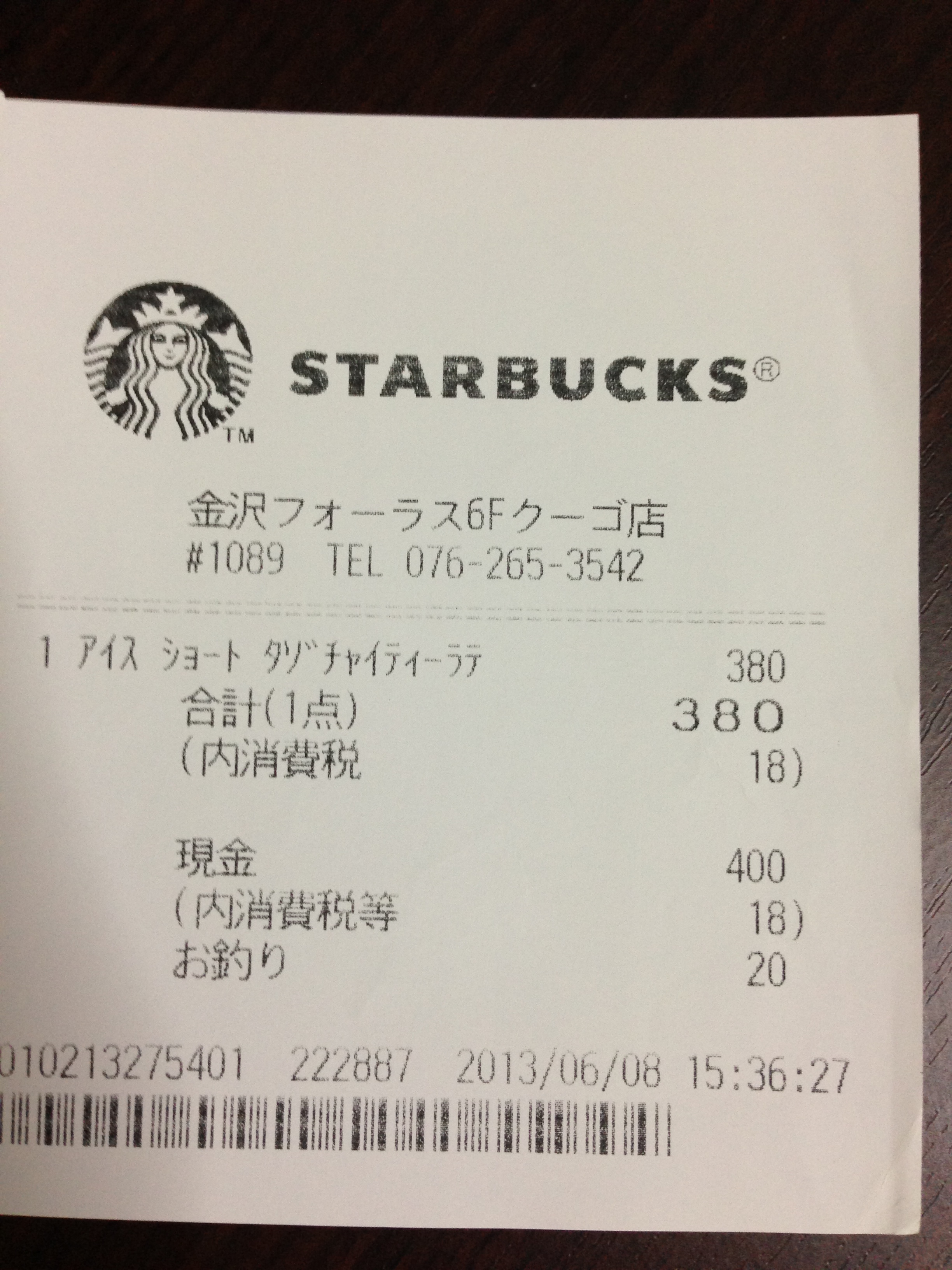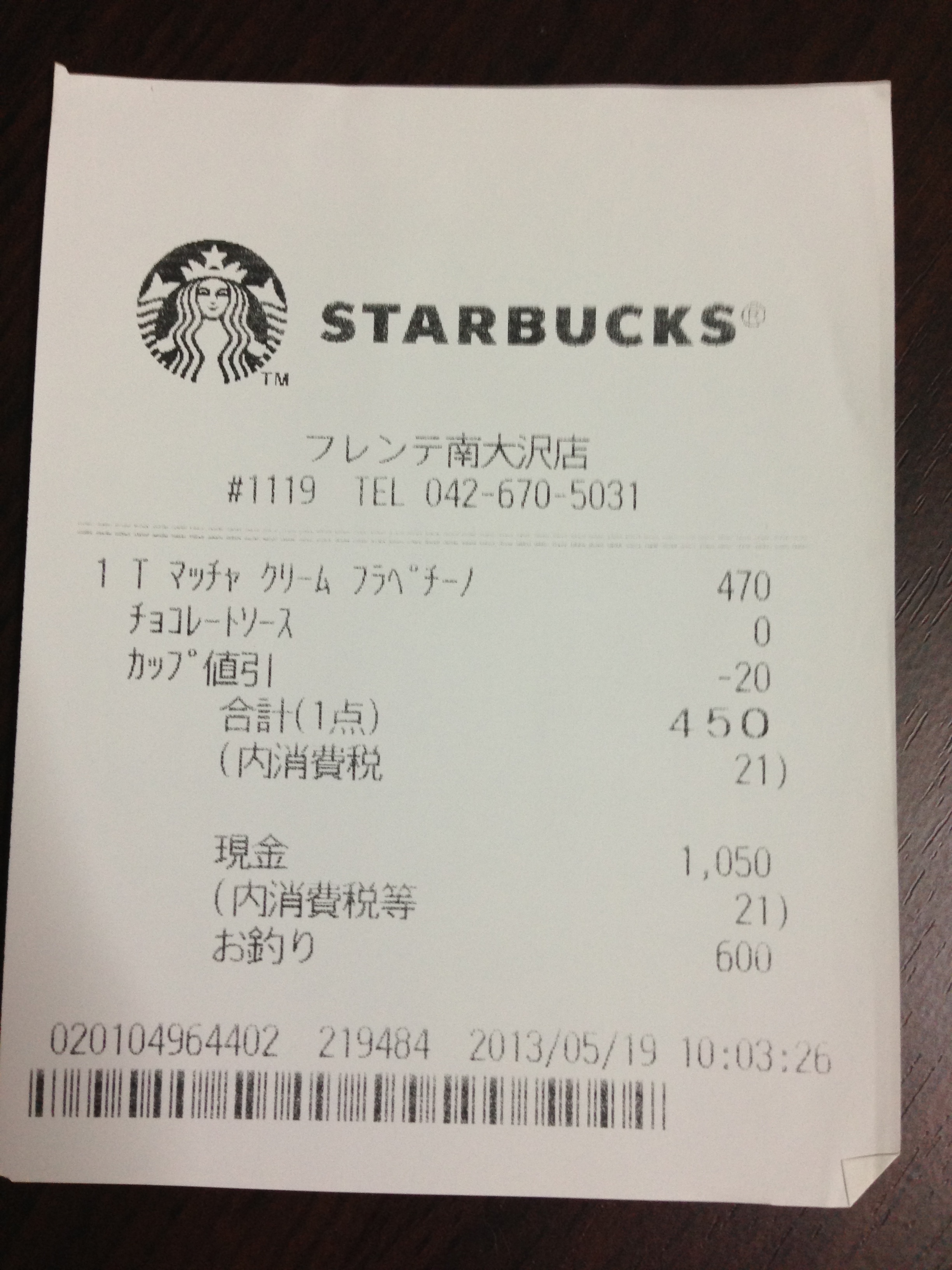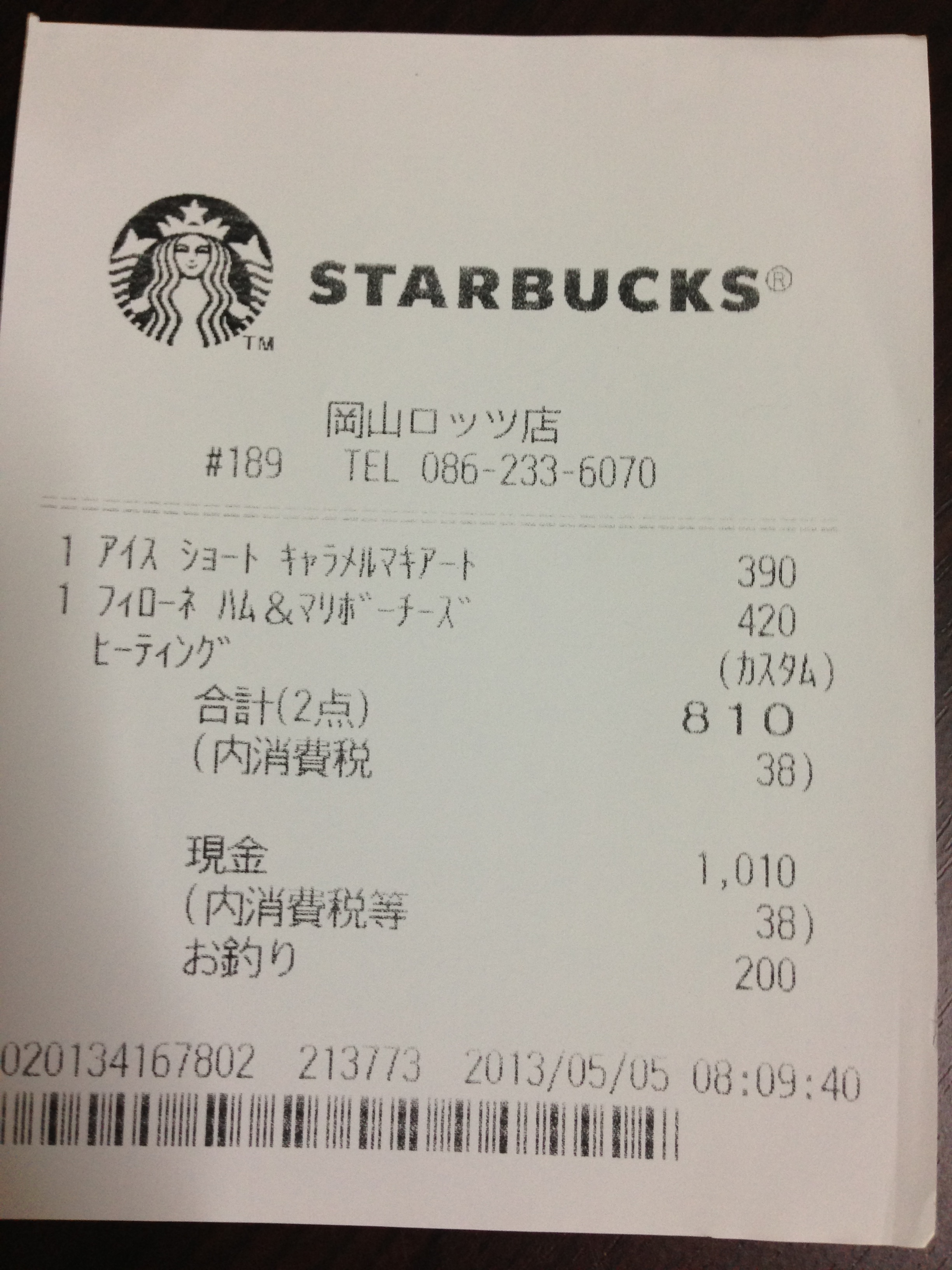 スタバのレシート