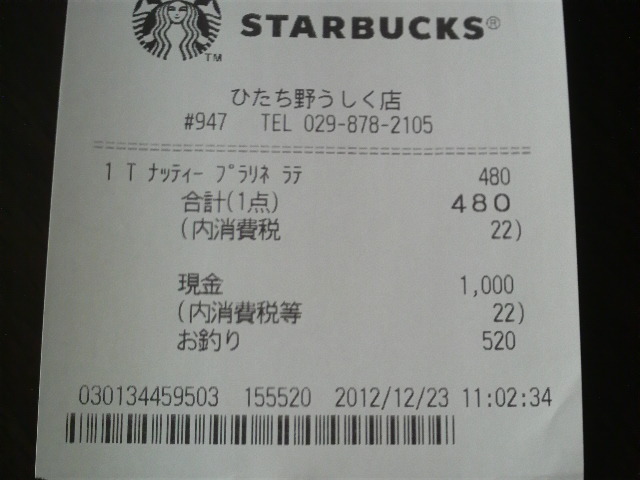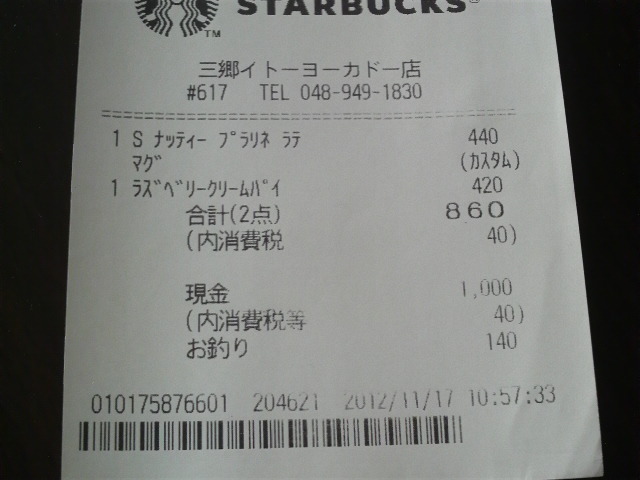 スタバのレシート