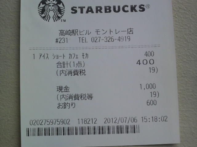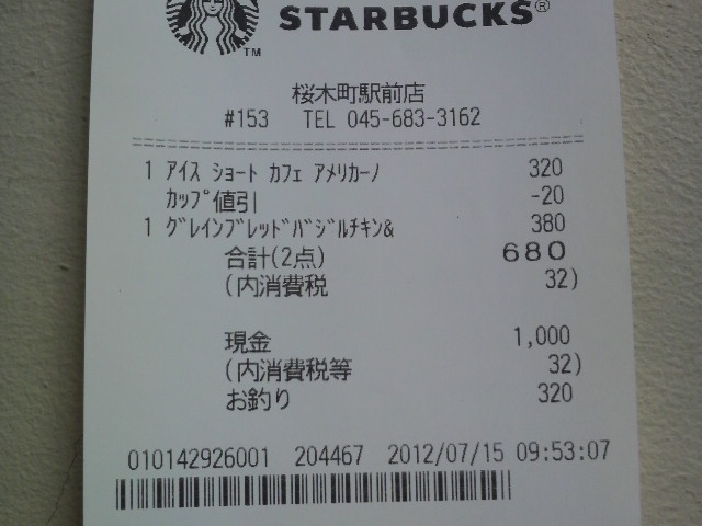 スタバのレシート