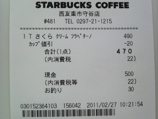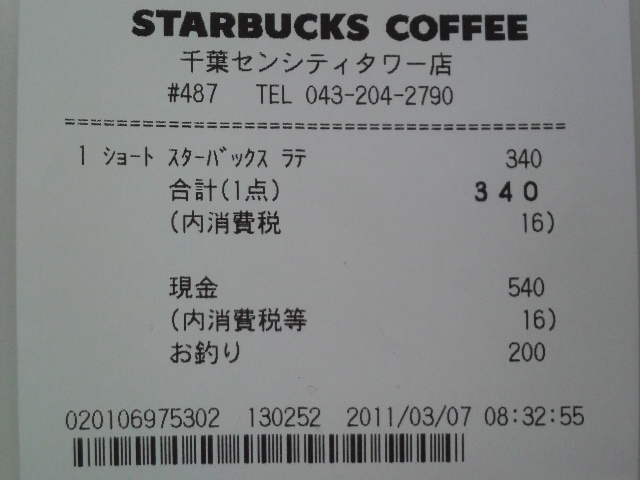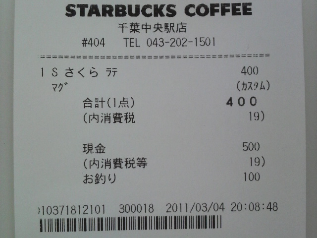 スタバのレシート