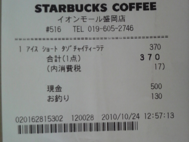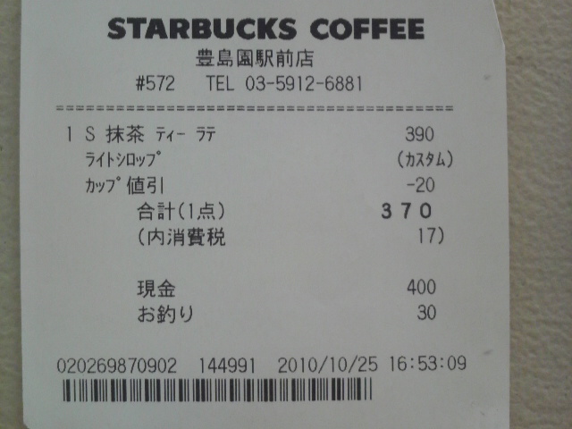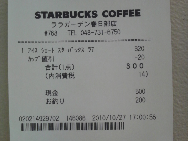 スタバのレシート