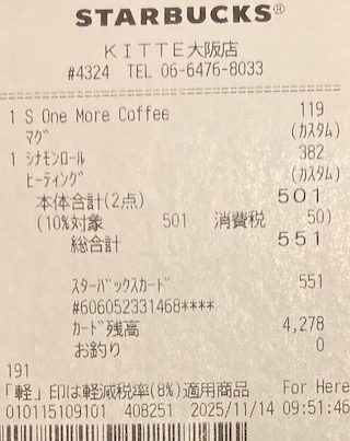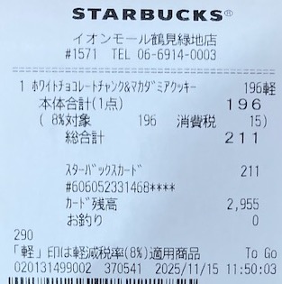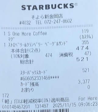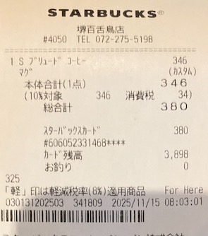 スタバのレシート