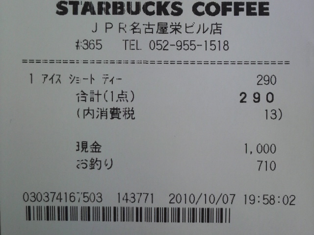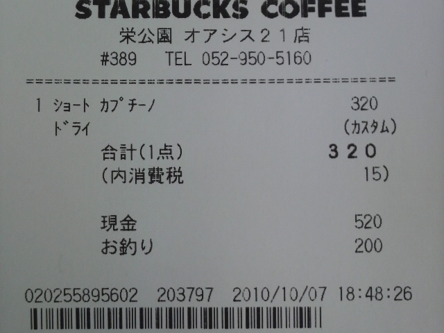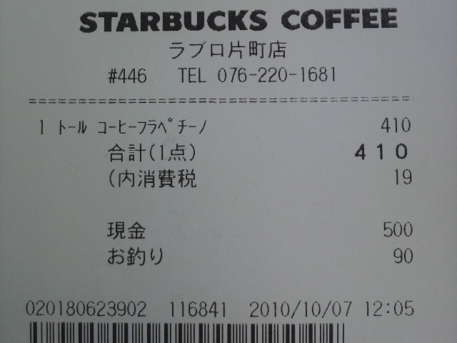 スタバのレシート