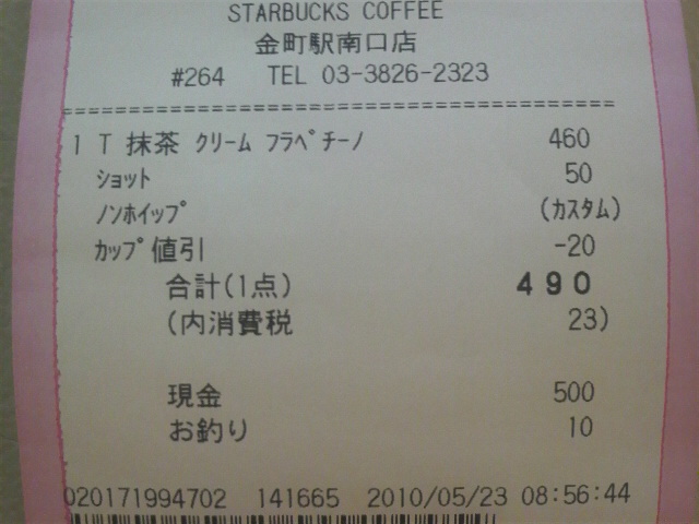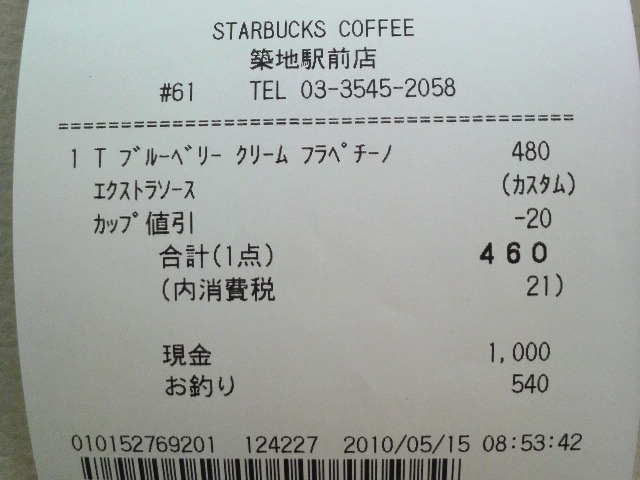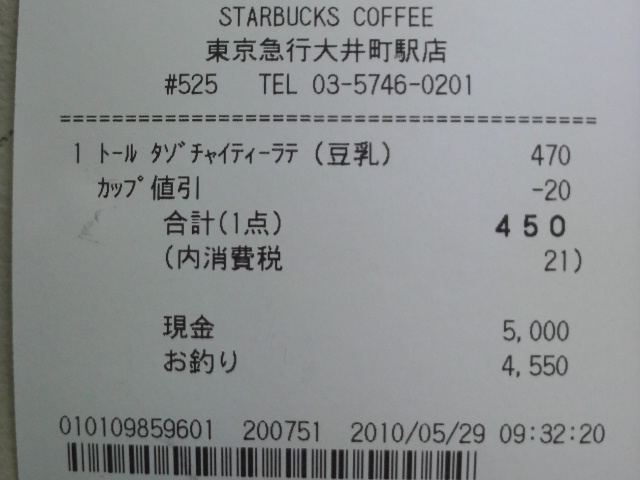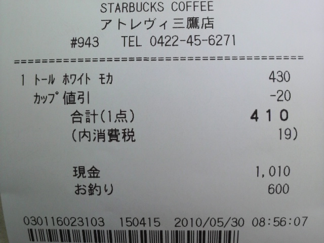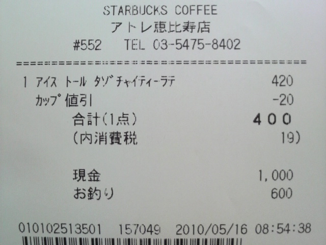 スタバのレシート