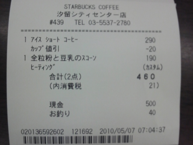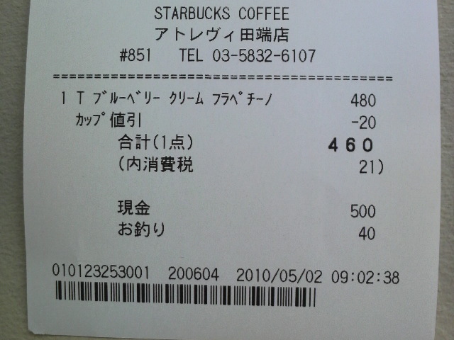 スタバのレシート