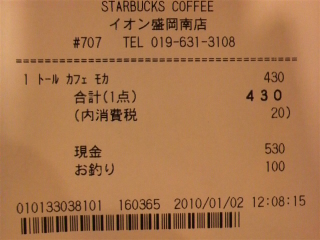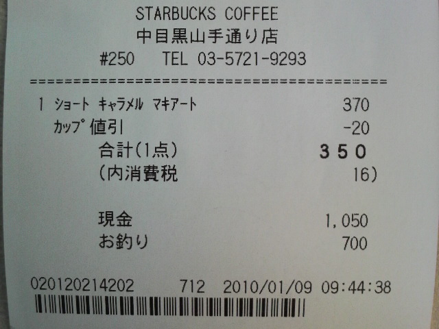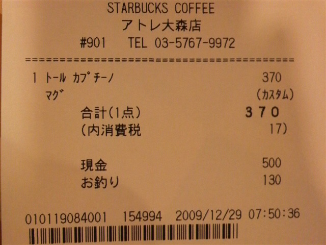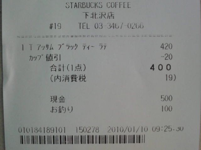 スタバのレシート