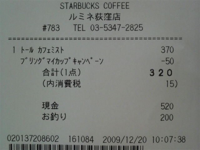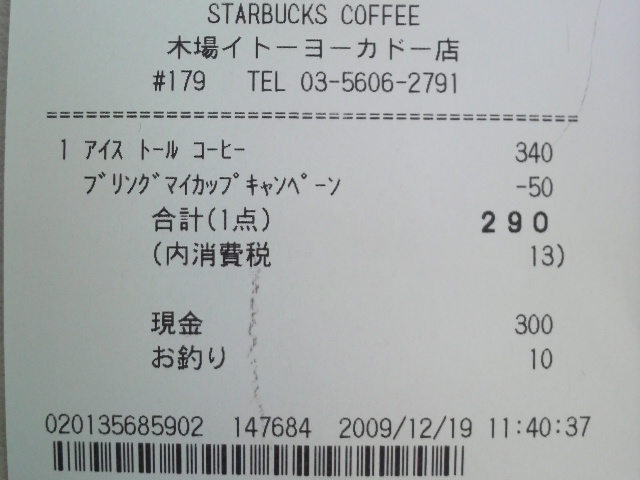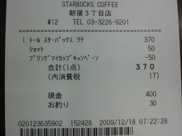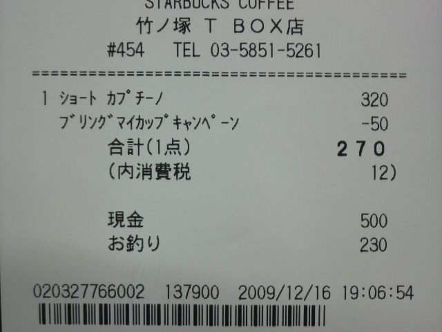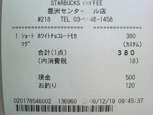 スタバのレシート