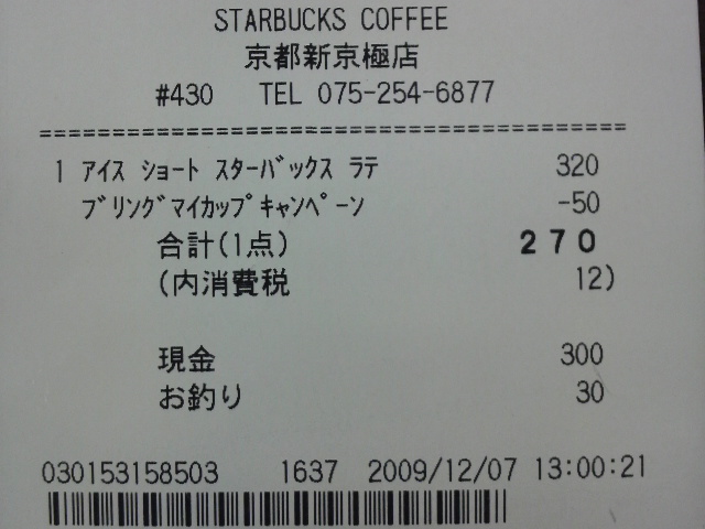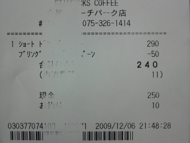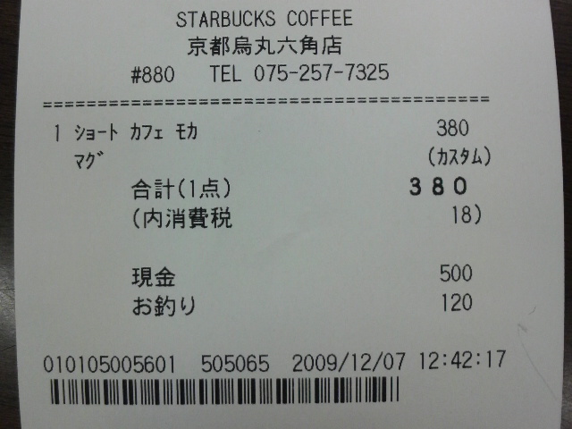 スタバのレシート