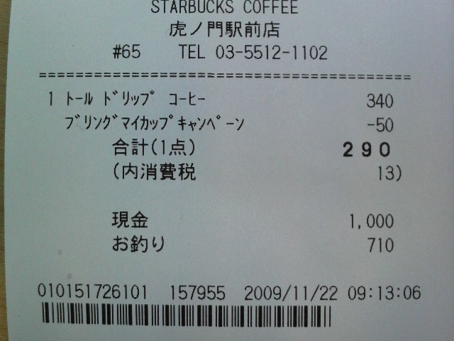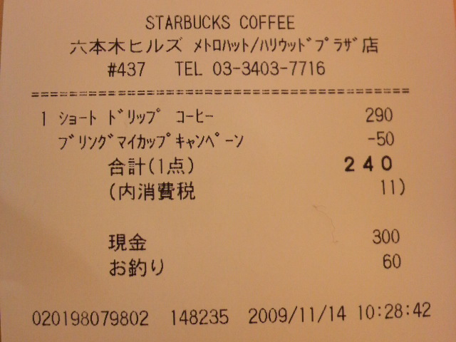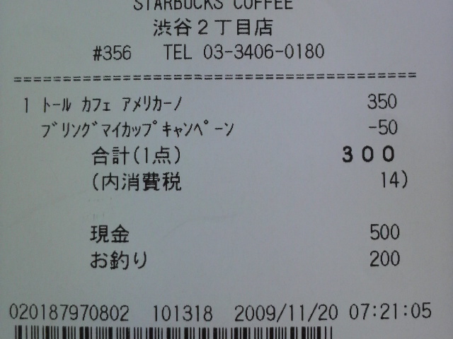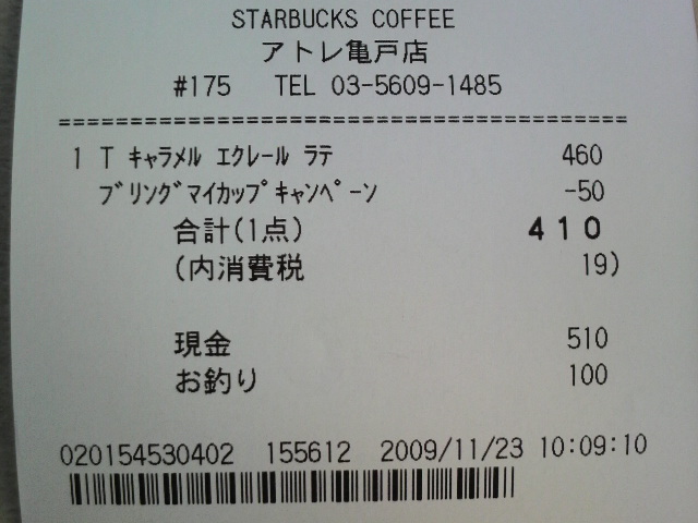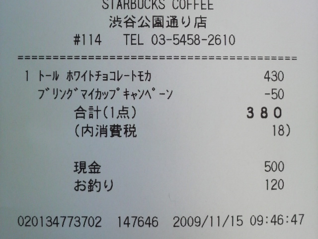 スタバのレシート