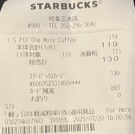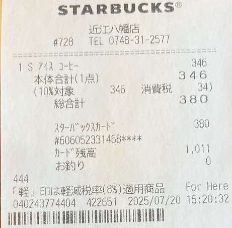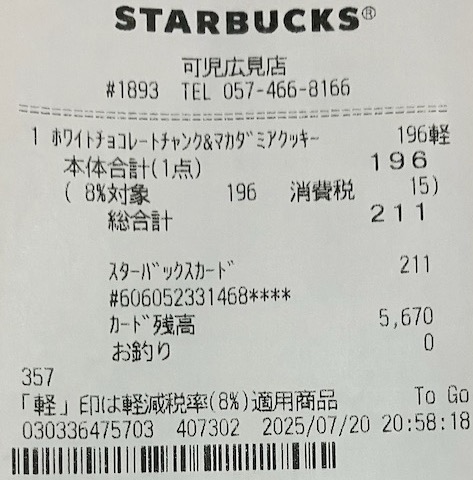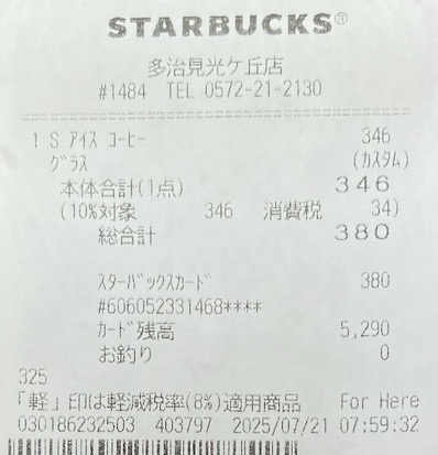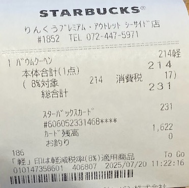 スタバのレシート