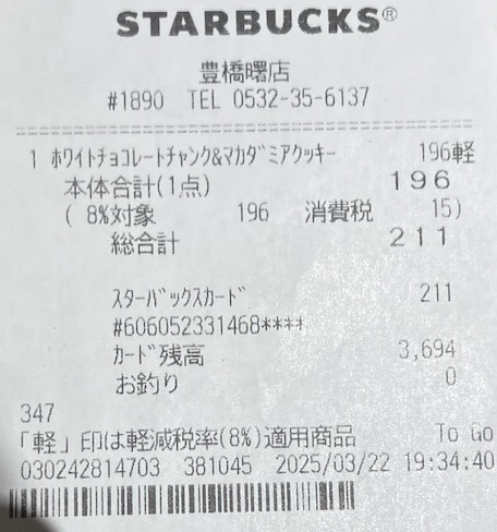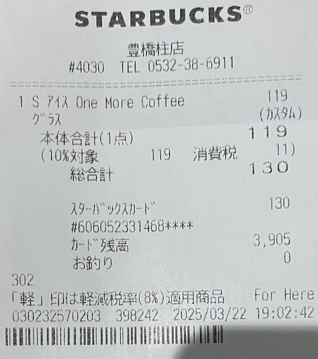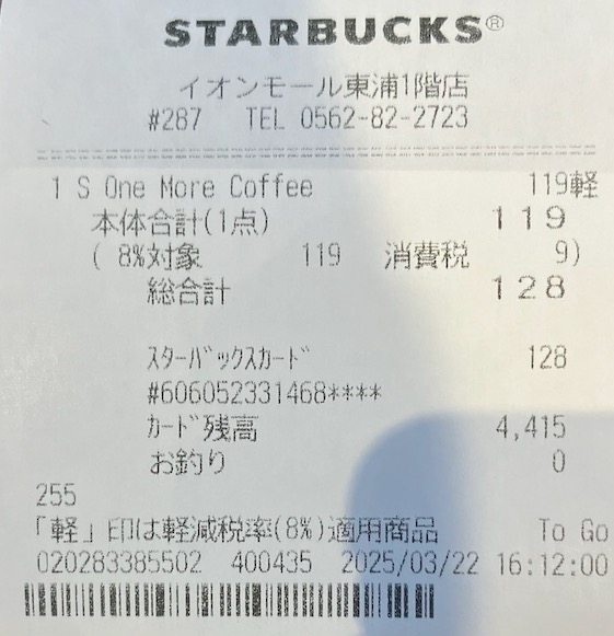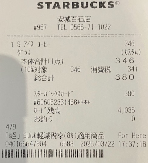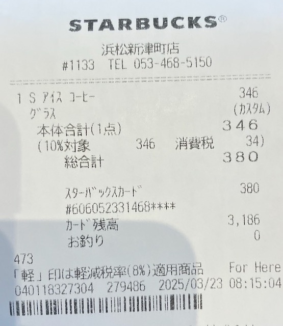 スタバのレシート
