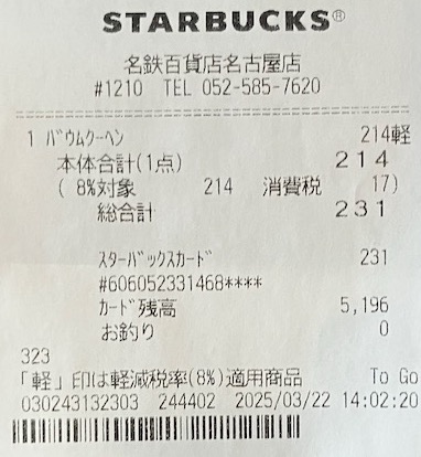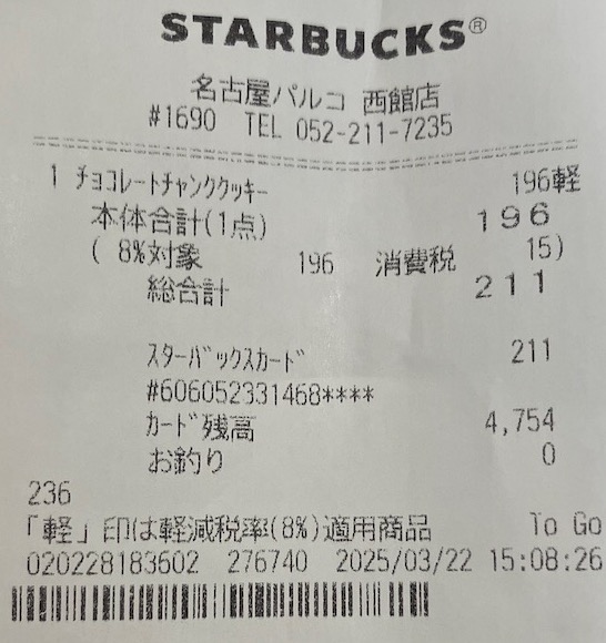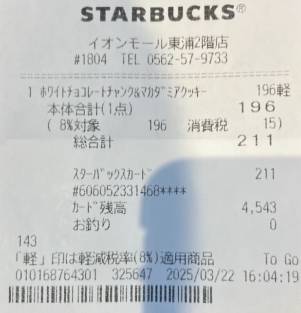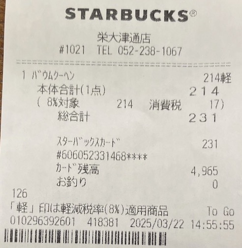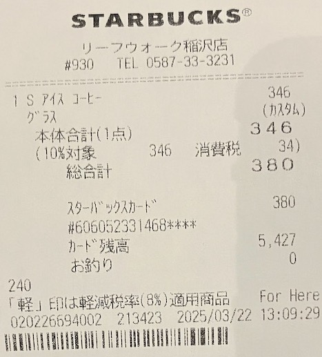 スタバのレシート