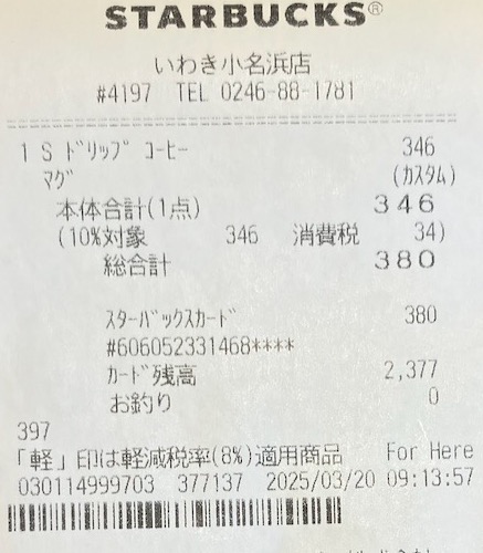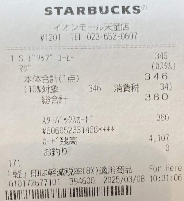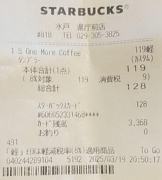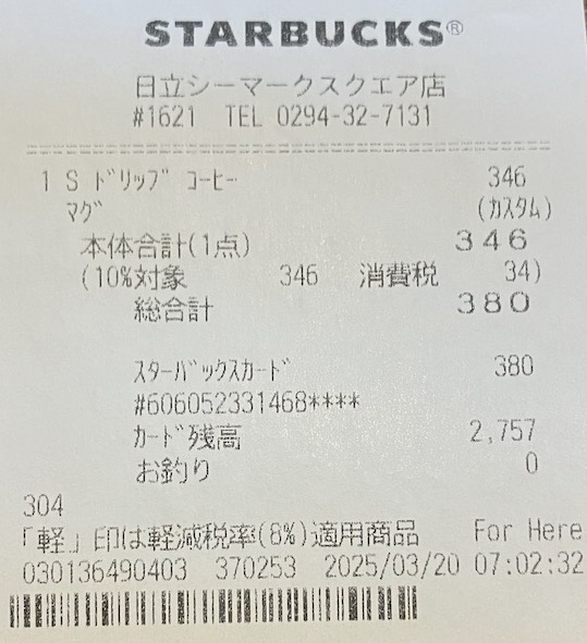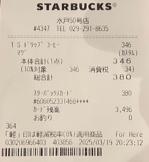 スタバのレシート