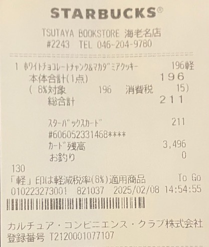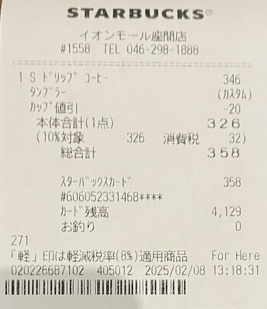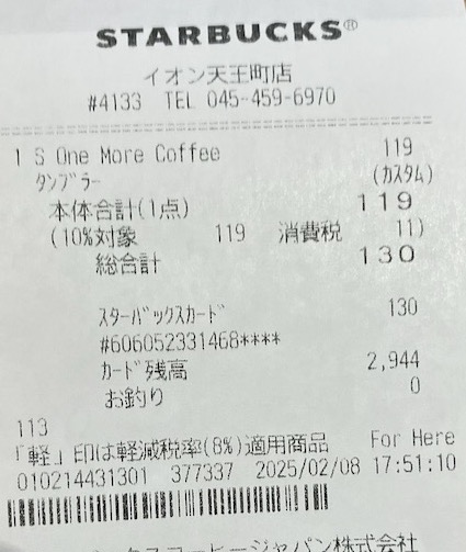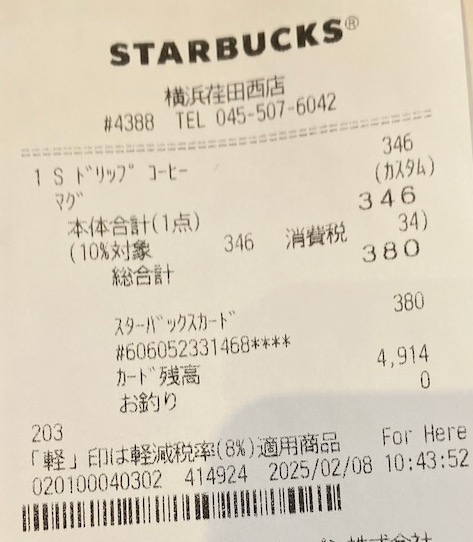 スタバのレシート