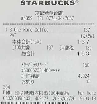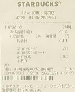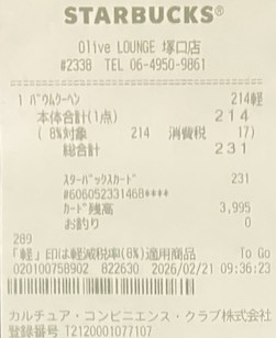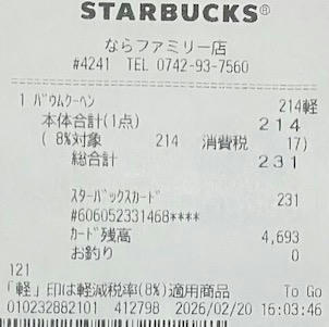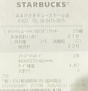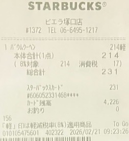 スタバのレシート