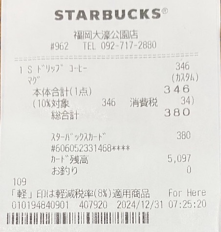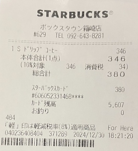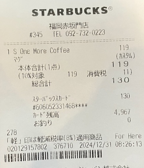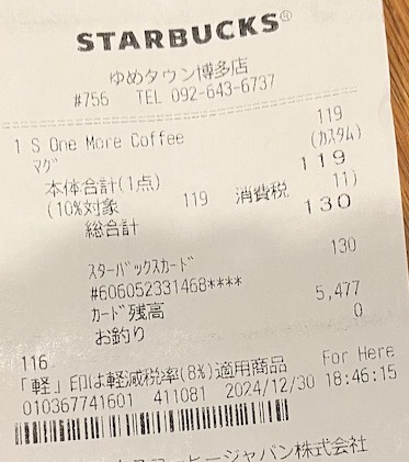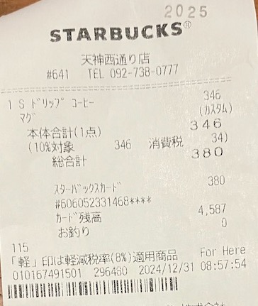 スタバのレシート