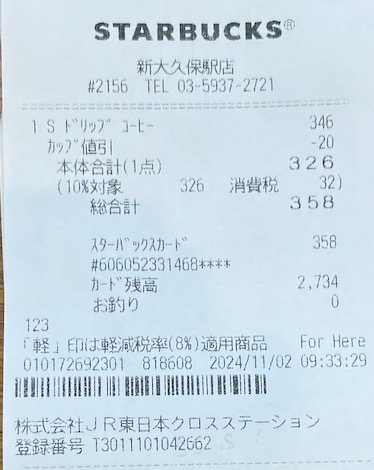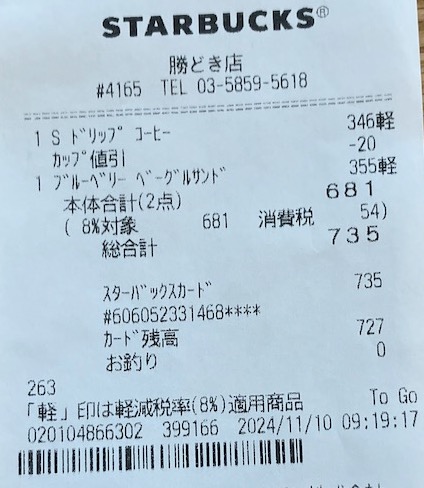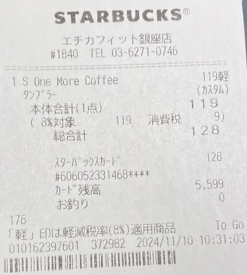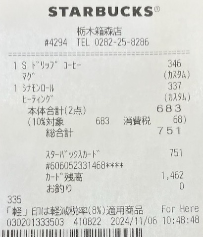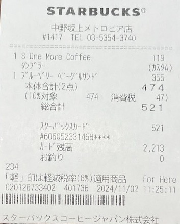 スタバのレシート
