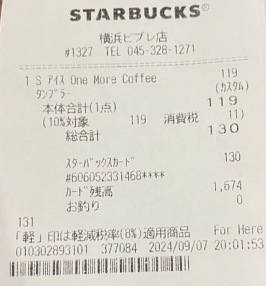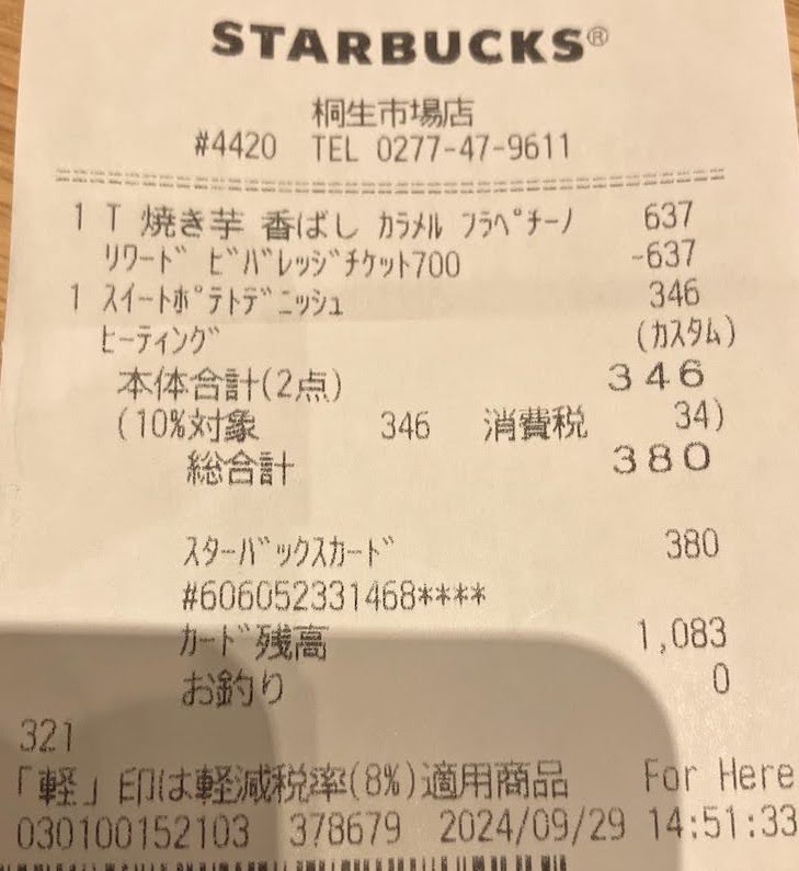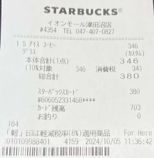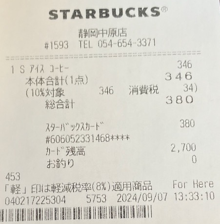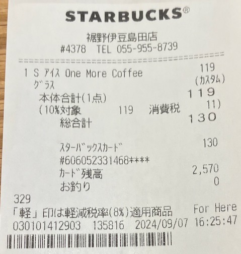 スタバのレシート