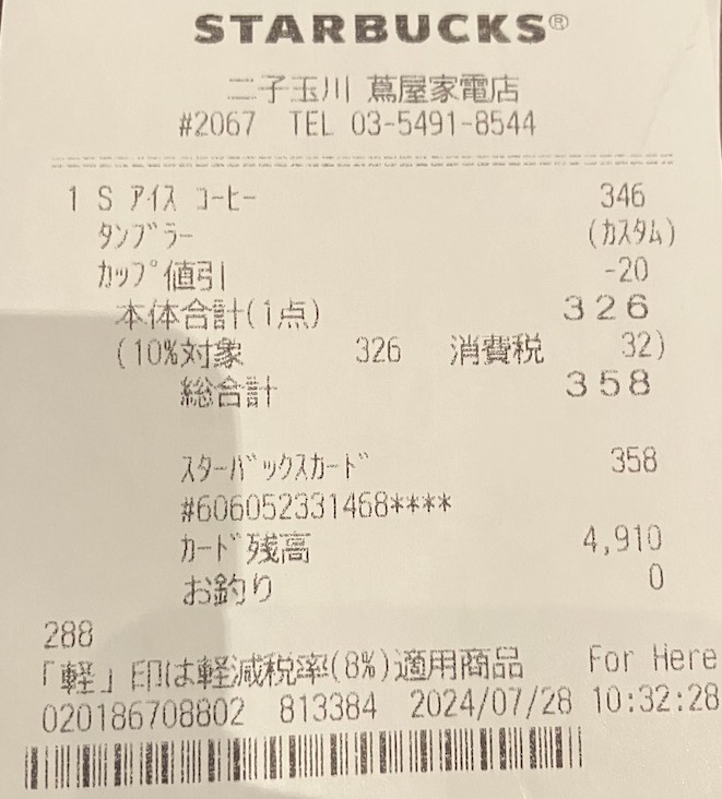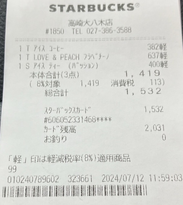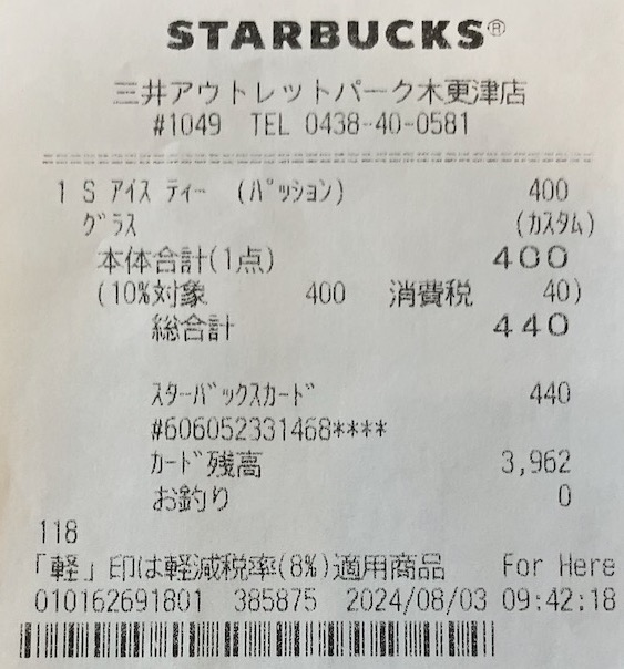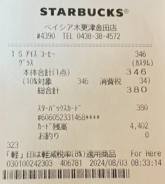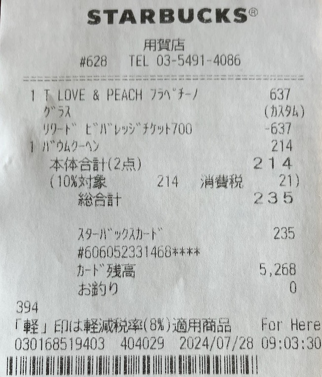 スタバのレシート