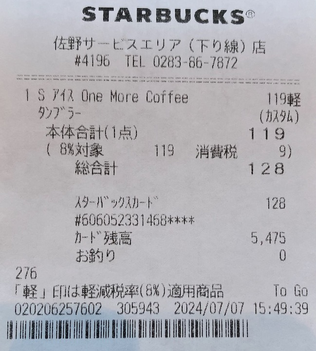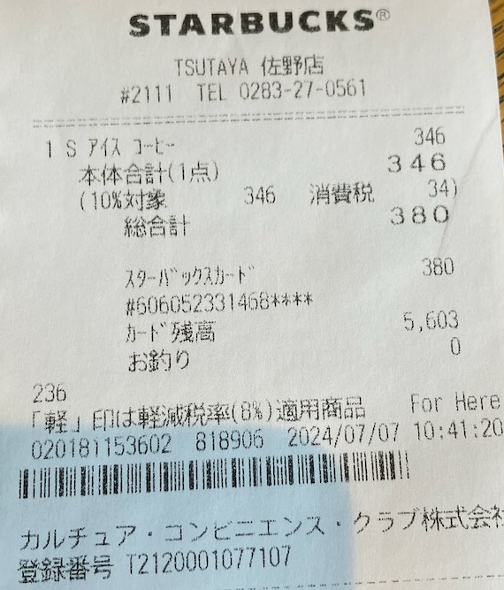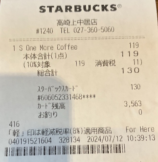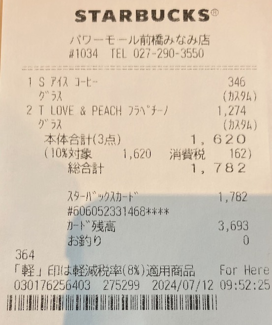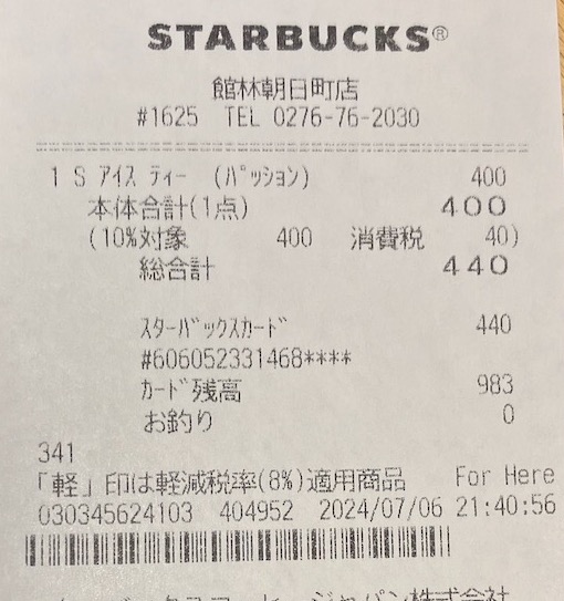 スタバのレシート